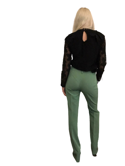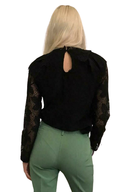 Maglia manica lunga in pizzo, doppiata nel busto per evitare trasparenze che si trovano solo nelle maniche.