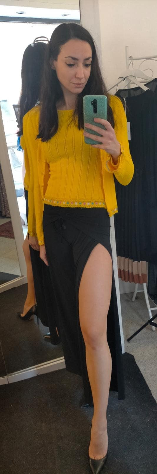 Lunghezza alla vita, perfetta con pantaloni o gonne a vita alta.