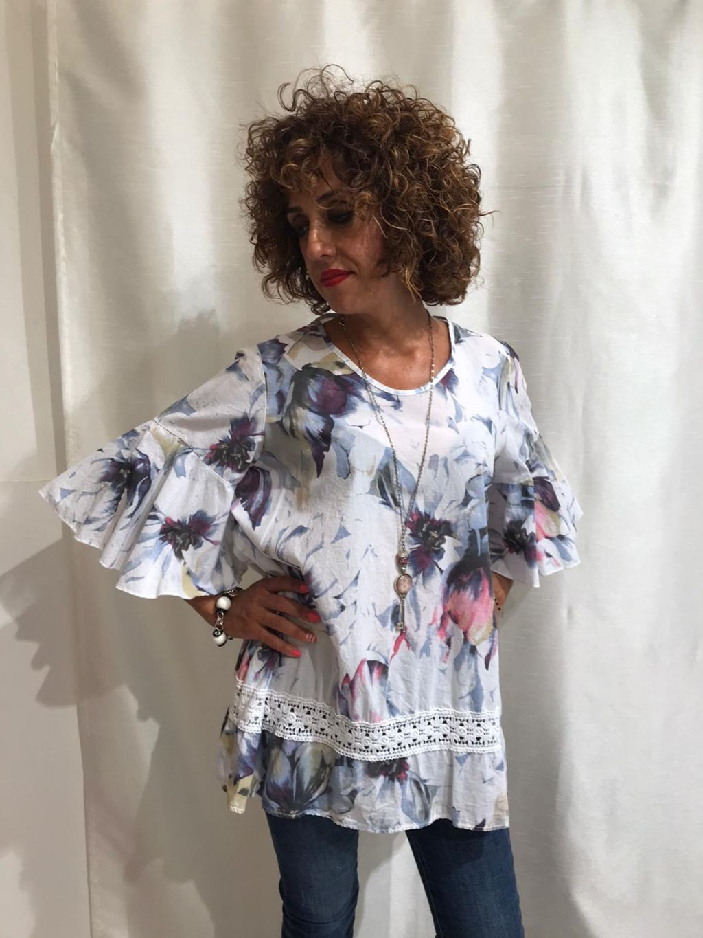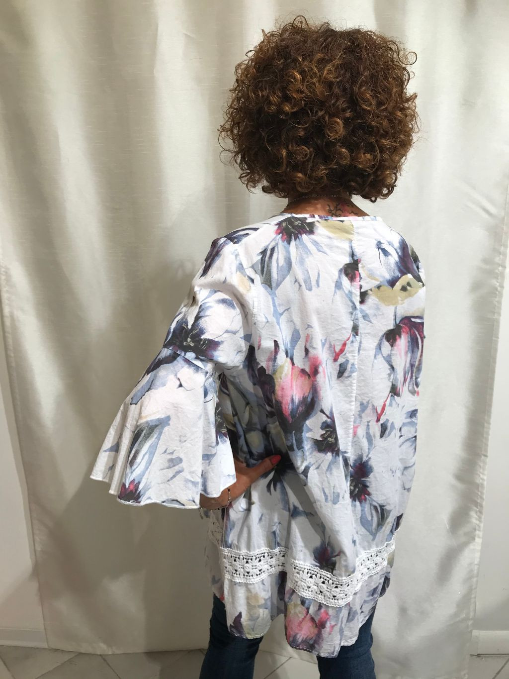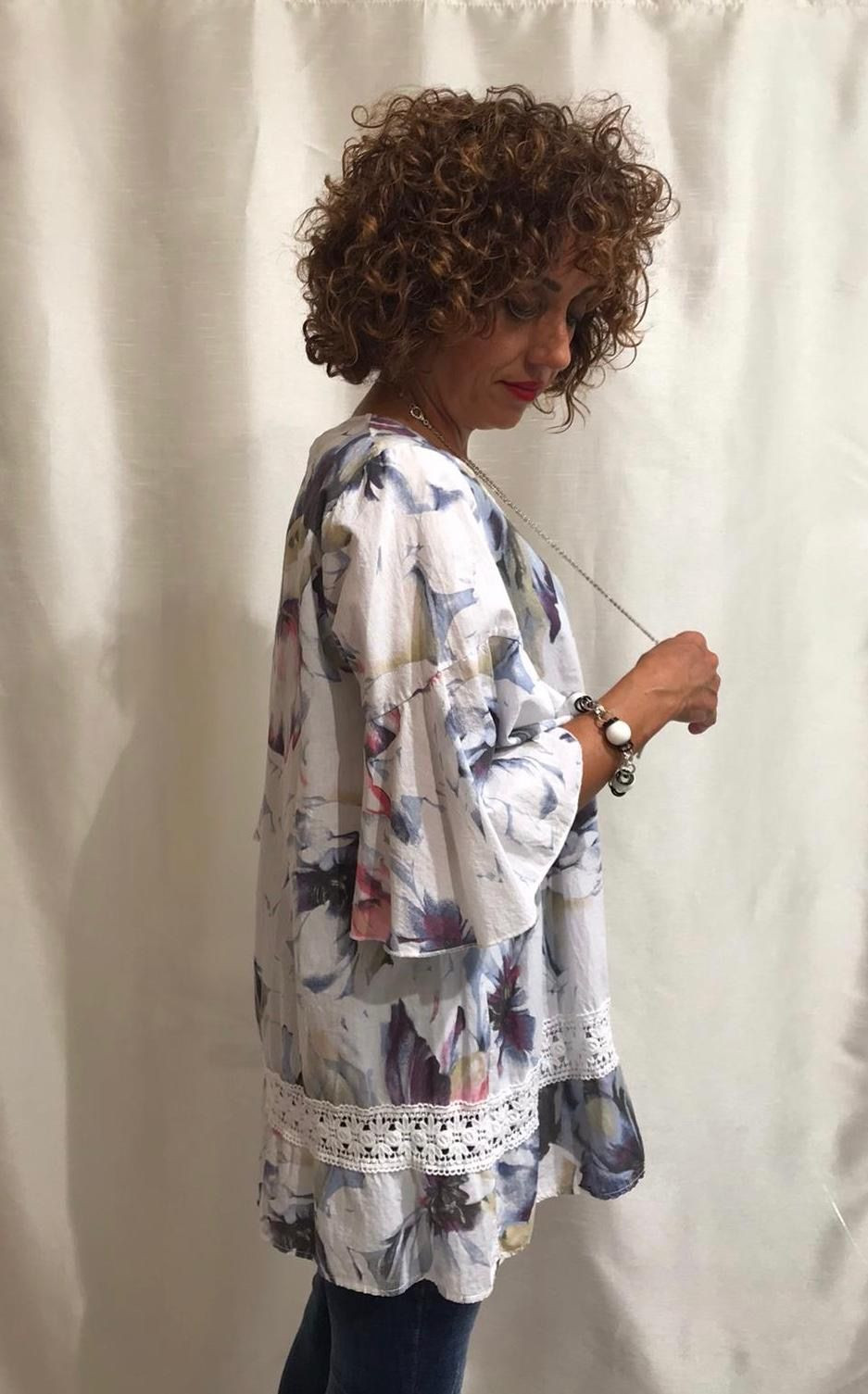 Manica a 3/4 ampia, in cotone e rifinita in pizzo.