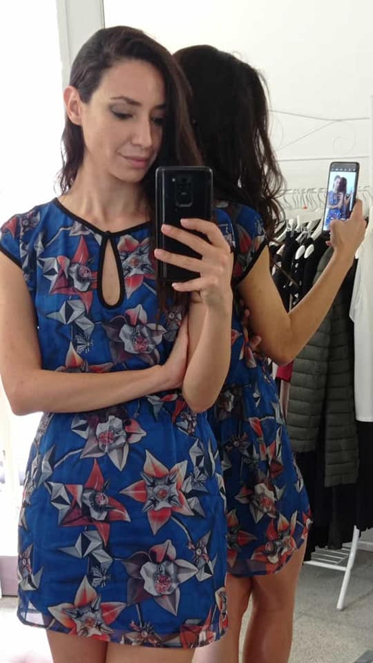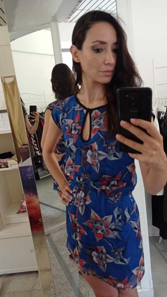 Mini abito con scollo a goccia. Completamente foderato, con elastico in vita. Puoi portarlo sia per il giorno con una scarpa sportiva, sia per la sera con un tacco ed e’ perfetto in entrambi i casi. Grazie alla conformazione e all’elastico veste molto bene sia la taglia indicata che quella sopra.