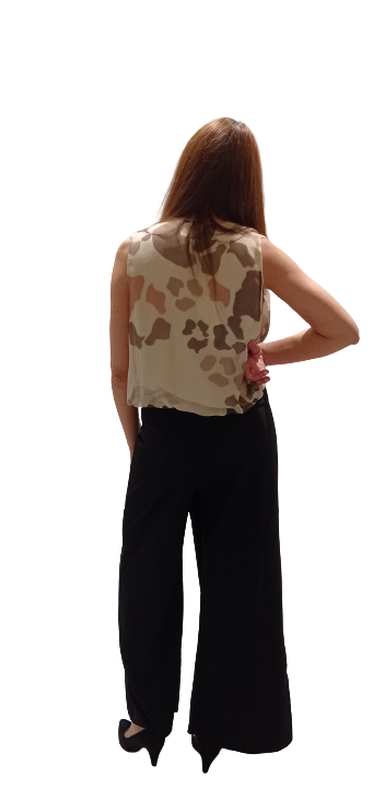 Elastico in vita per renderlo piu’ confortevole, puoi abbinarlo sia ad una t shirt semplice con sneackers che ad una blusa elegante con scarpa elegante come in foto per indossarlo in situazione piu’ formali come piccole cerimonie.