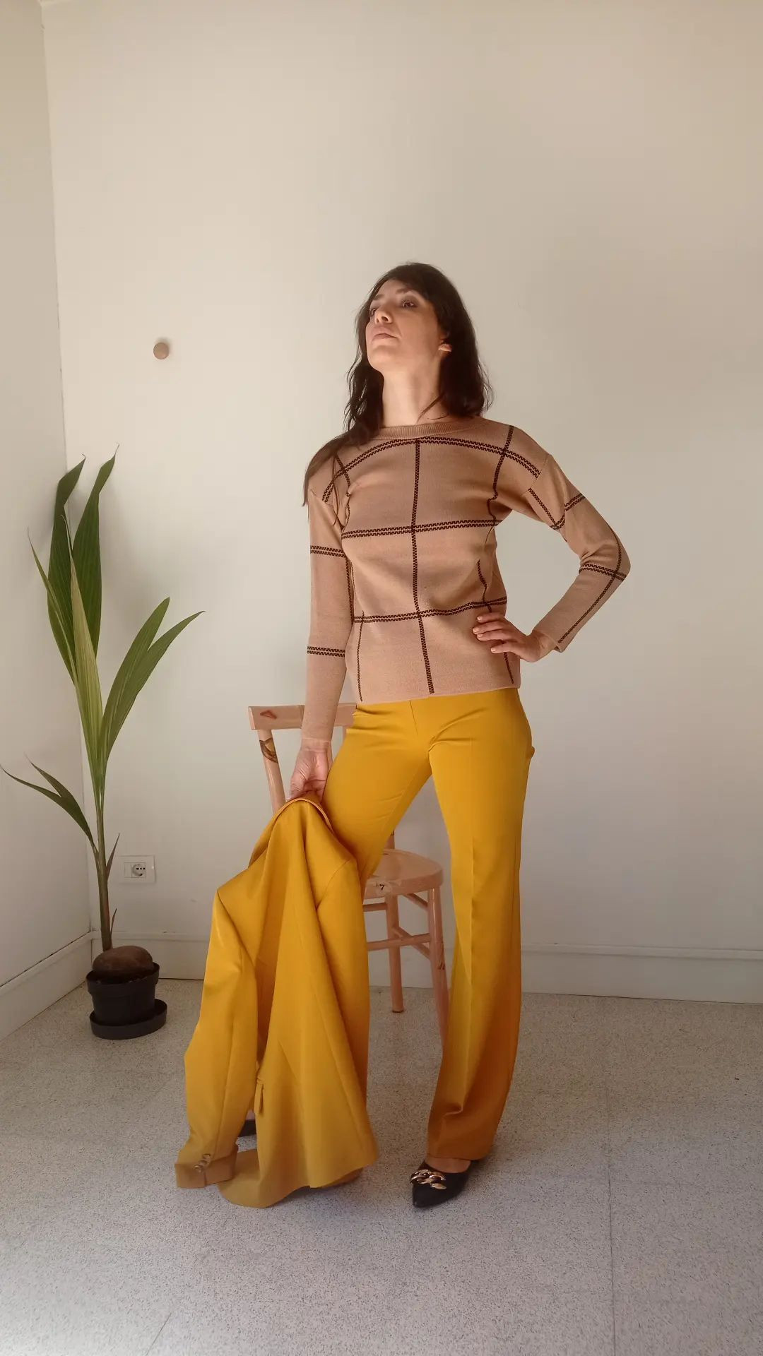 Pantalone donna Stella McQueen Art. Bio In un caldo color ocra, una combinazione di eleganza e freschezza, Vita alta e leggermente conformante. Perfetto sia in abbinamento ad una blusa che in abbinamento ad una maglia confortevole e calda. Ti ricorda il look speciale delle favolose donne anni 60? Brand Stella McQueen