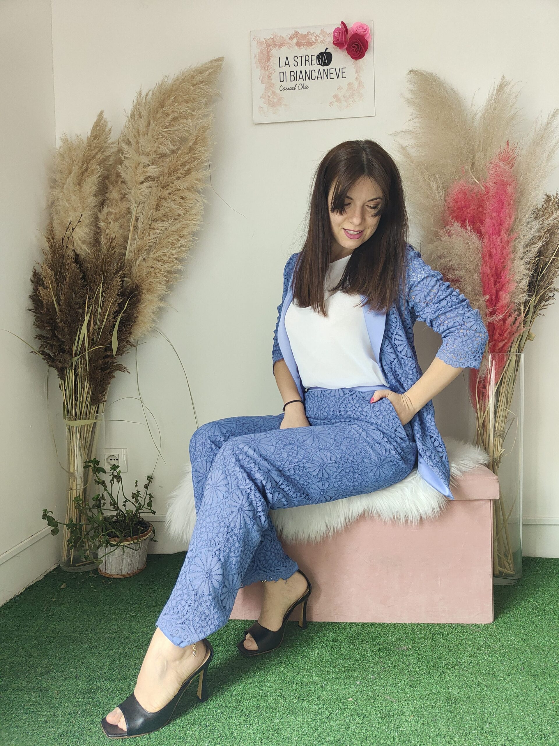 📌 Disponibilità limitata! Il Pantalone Palazzo in Pizzo Pervinca è un capo esclusivo, prodotto in piccole quantità per garantire qualità e unicità.