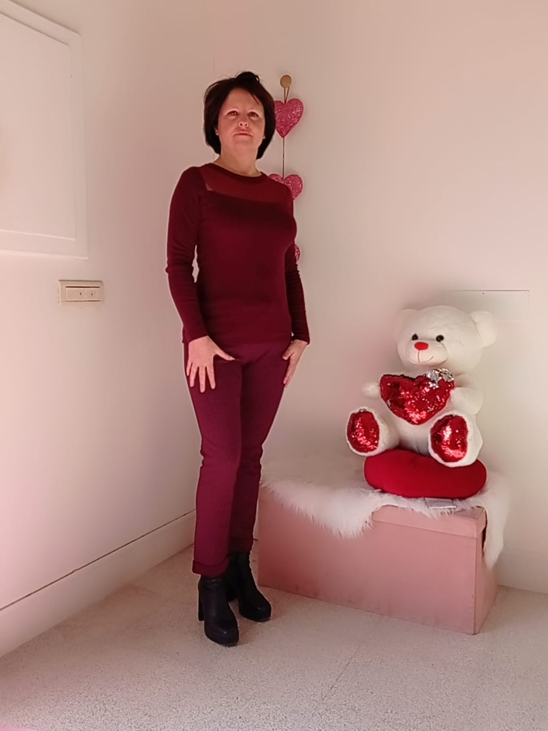 Pois bianco su fondo amaranto.