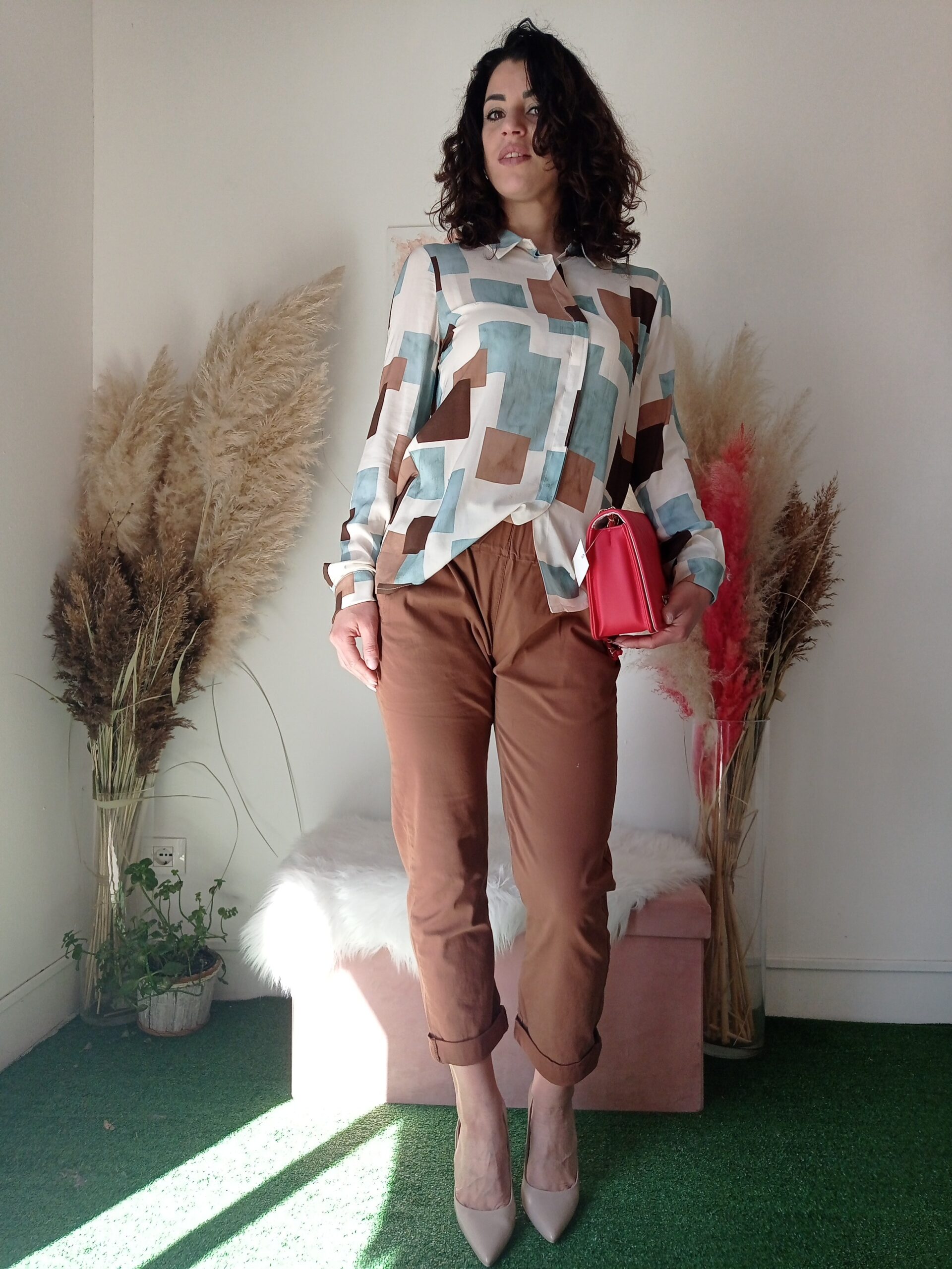 - Per un look da ufficio: Abbinare i pantaloni marrone bruciato o neri con una camicia bianca e un blazer per un outfit professionale ed elegante.