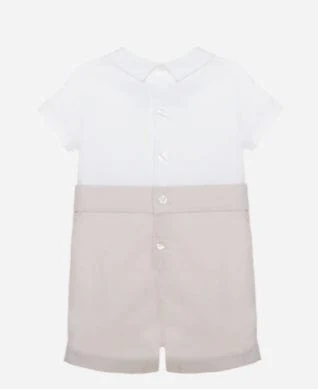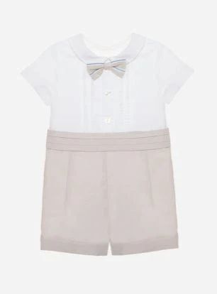Pagliaccetto bimbo in tessuto Oxford, finta fascia smoking in vita e papillon abbinato.