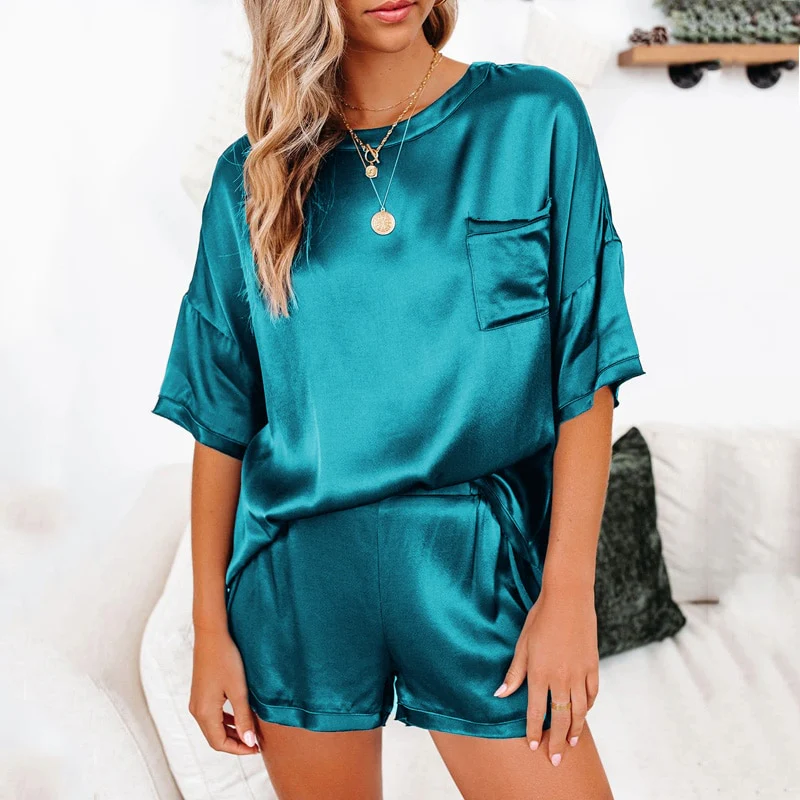 Caratteristiche del prodotto Pigiami da donna Il set è composto da una maglietta e pantaloncini Tasca decorativa sulla maglietta Materiale satinato Taglio ampio Disponibile in quattro varianti colore: blu navy, turchese, verde, verde chiaro Taglia Petto (cm) Vita (cm) Manica (cm) Lunghezza maglietta (cm) S 127 66 28.5 61 M 132 71 29 62.5 L […]