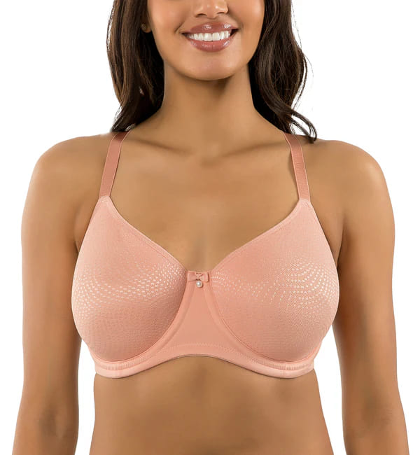 Realizzato in elegante tessuto jacquard, questo reggiseno riduce visivamente il volume del seno fino a una coppa, grazie alle coppe lisce, preformate e senza cuciture che garantiscono un effetto contenitivo naturale, senza imbottiture ingombranti.