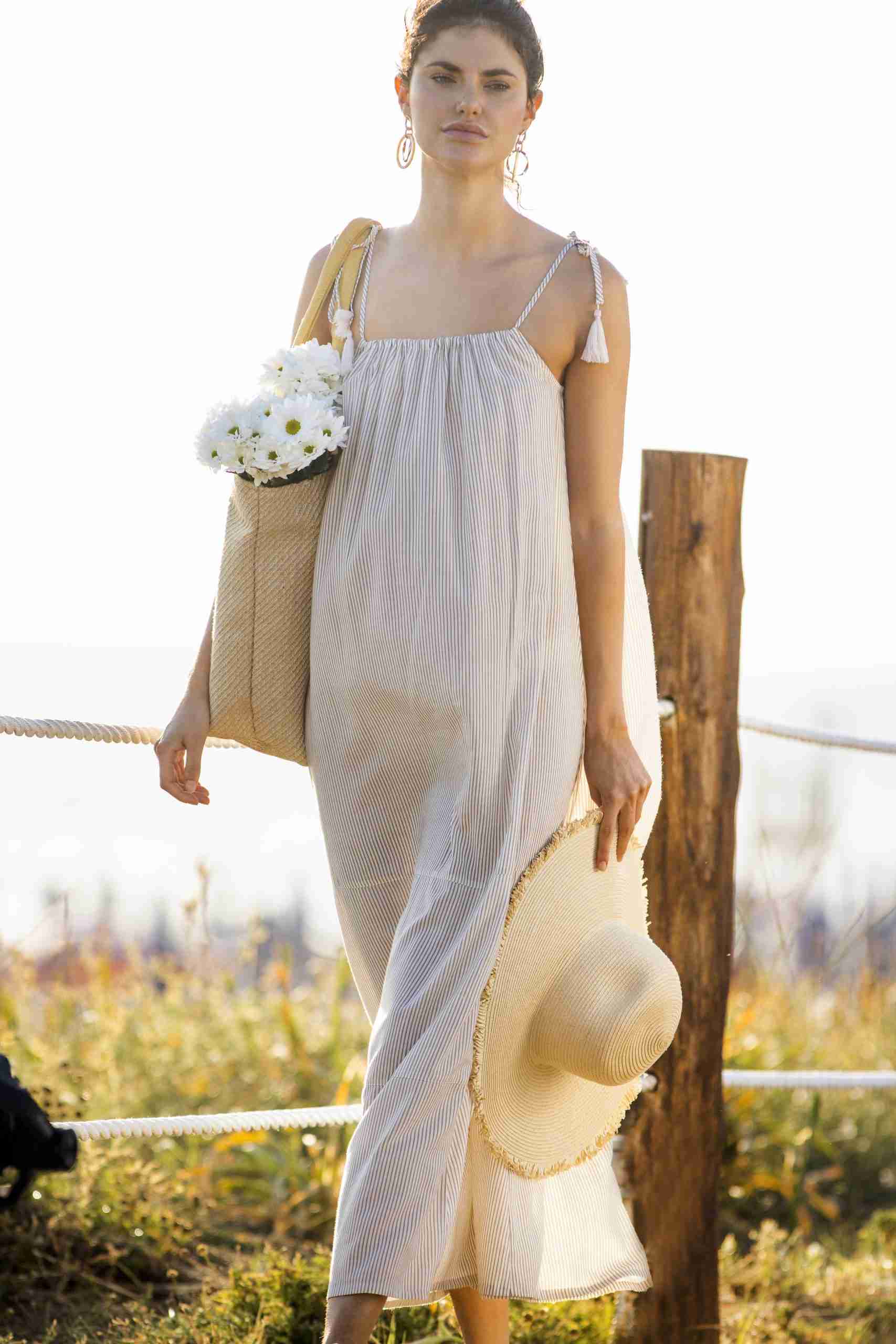 Abitino mare donna bretellina con stampa a righe in viscosa