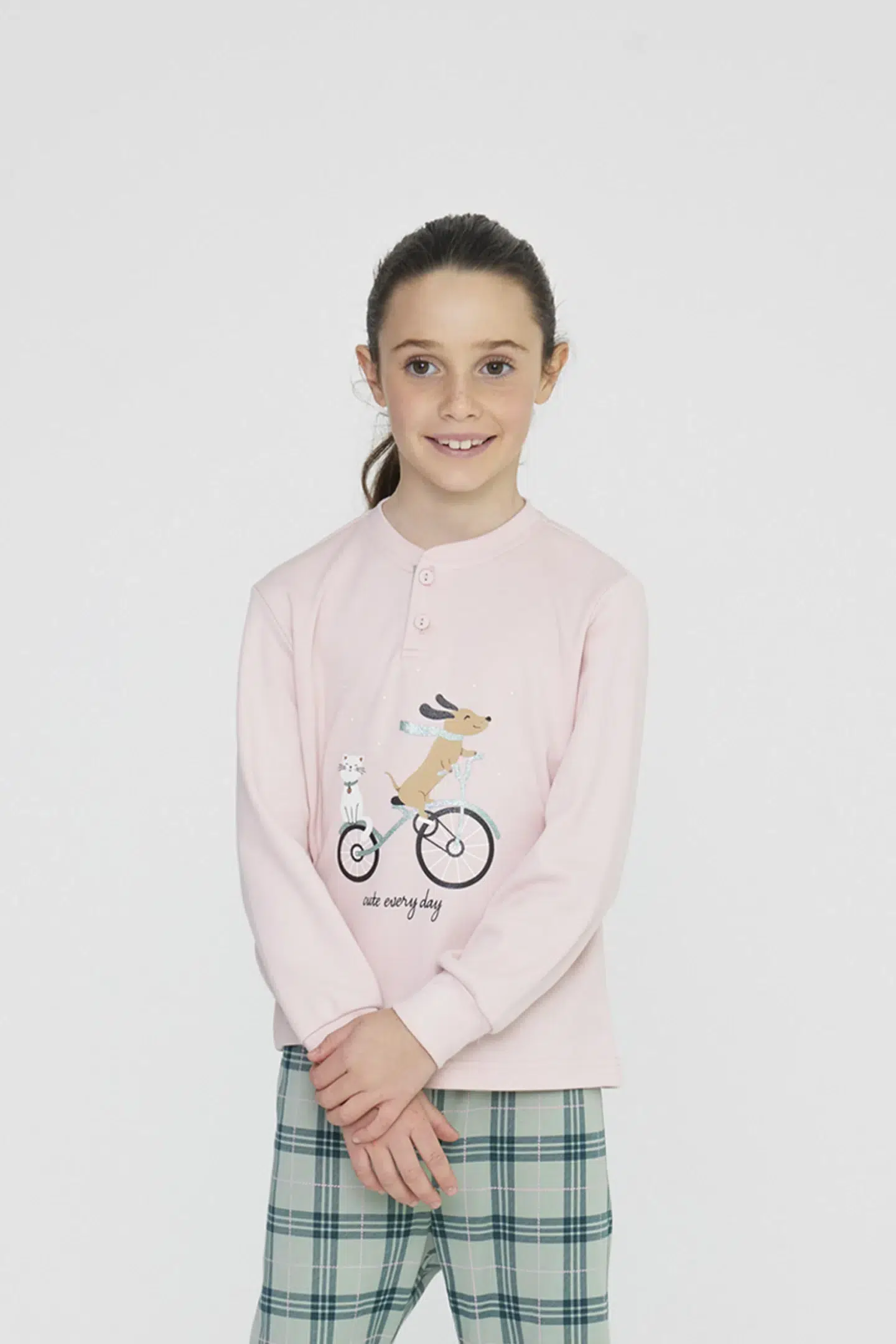 Rif.2422 Pigiama bambina/o yuppie in caldo cotone con collo due bottoni