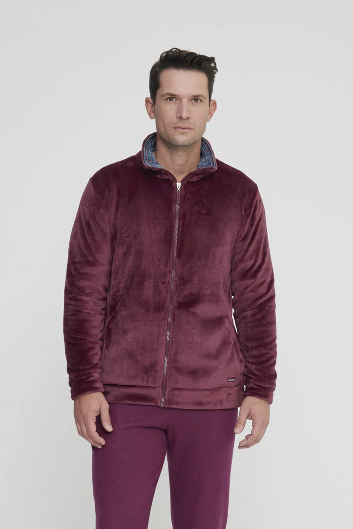 Giacca uomo nik in morbido e confortevole coral con pratica zip e colletto a contrasto in stampa scozzese