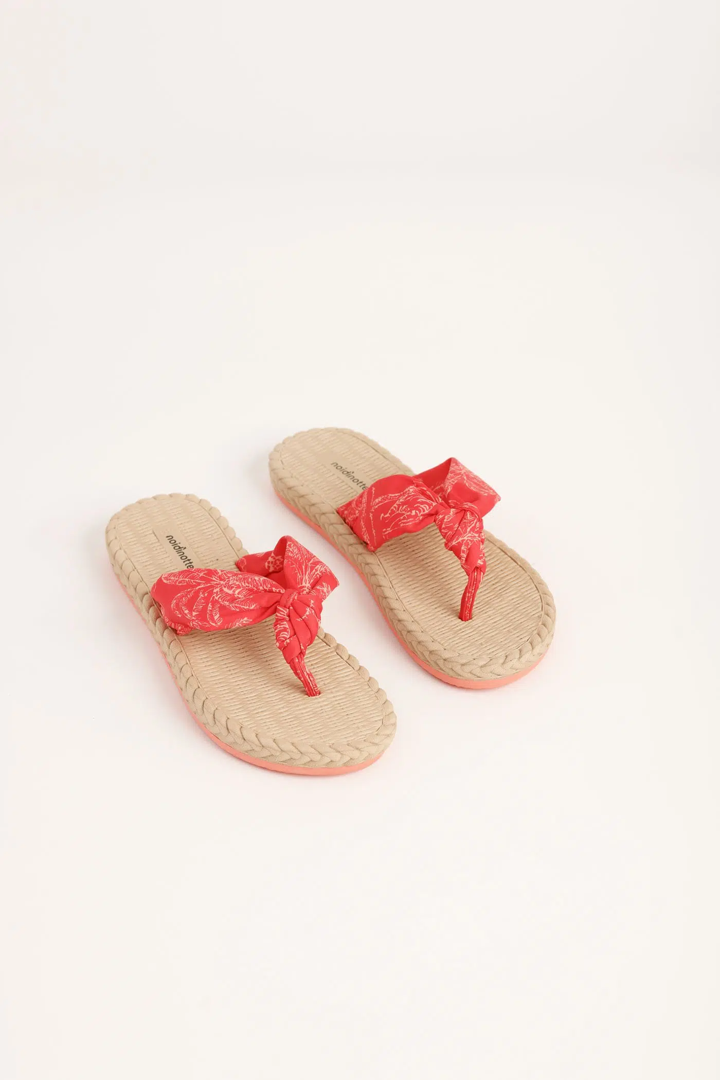 Infradito donna gomma palma suola superiore effetto paglia e cinturino in tessuto con stampa palme