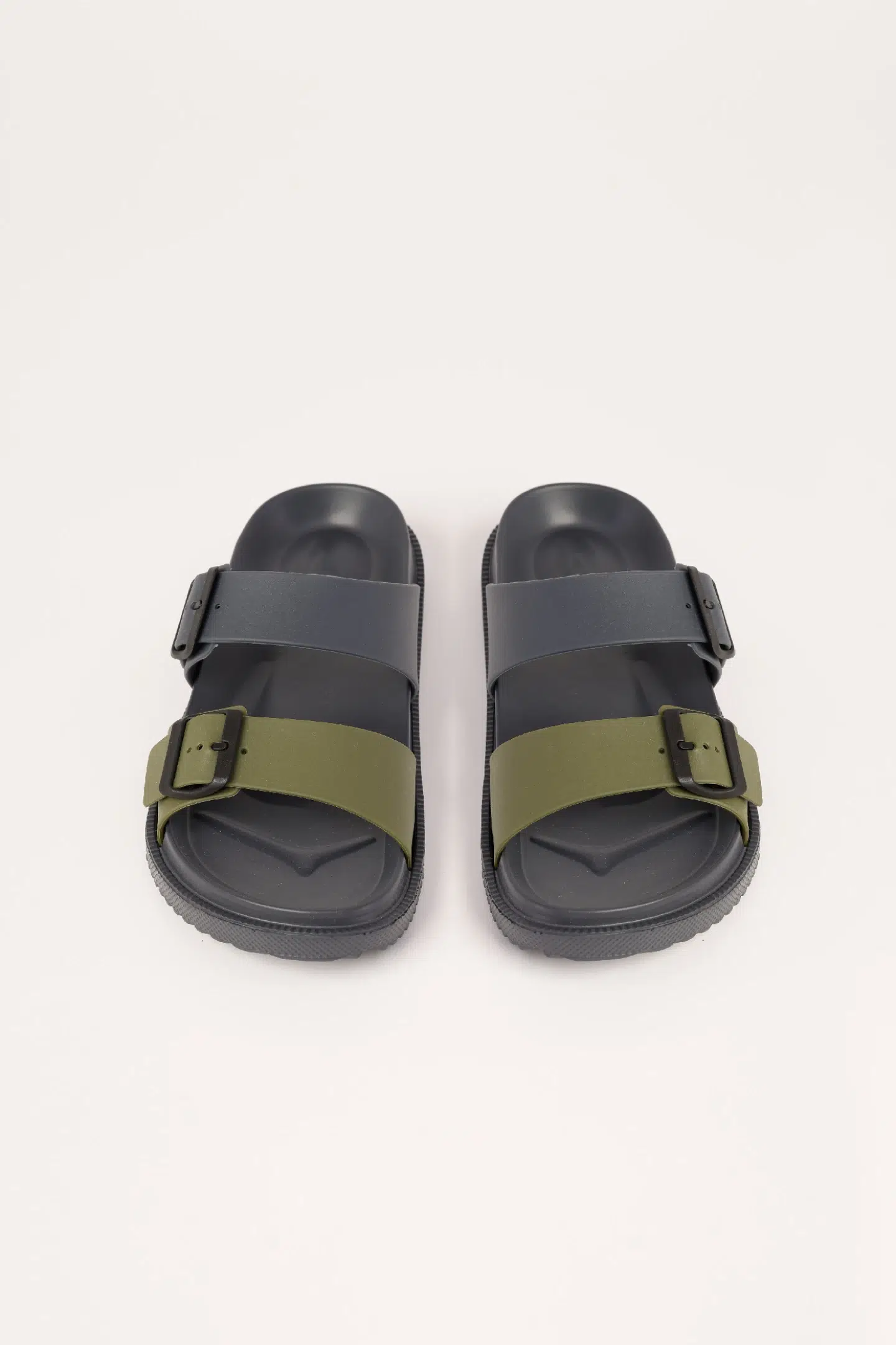 Ciabatta uomo gomma belt con suola tinta unita e doppia fibbia