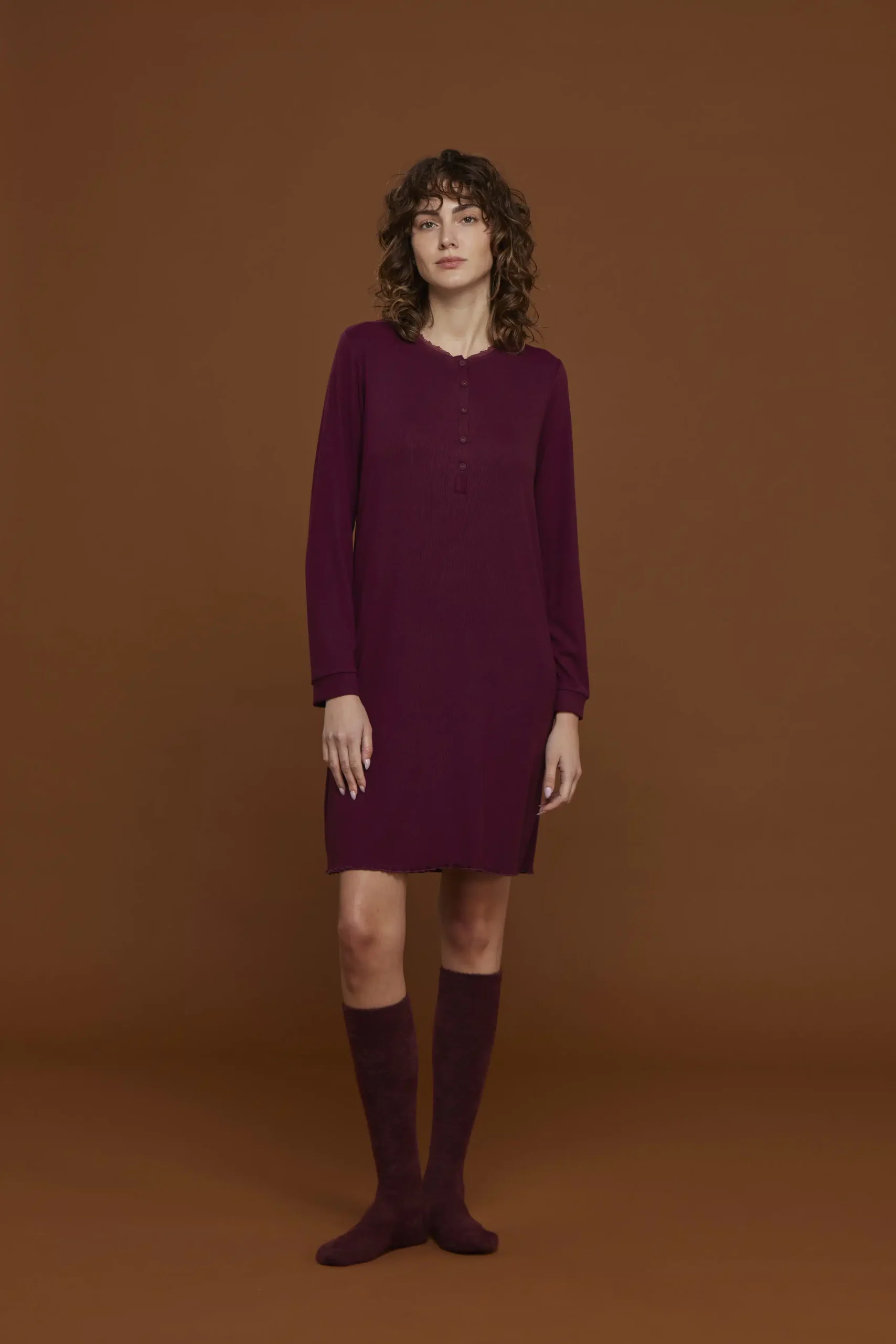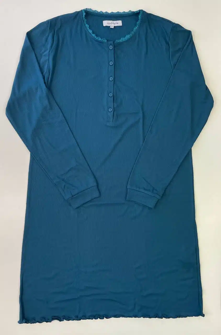 Camicia da notte costina genny manica lunga con polsini, scollo serafino profondo e dettagli in pizzo