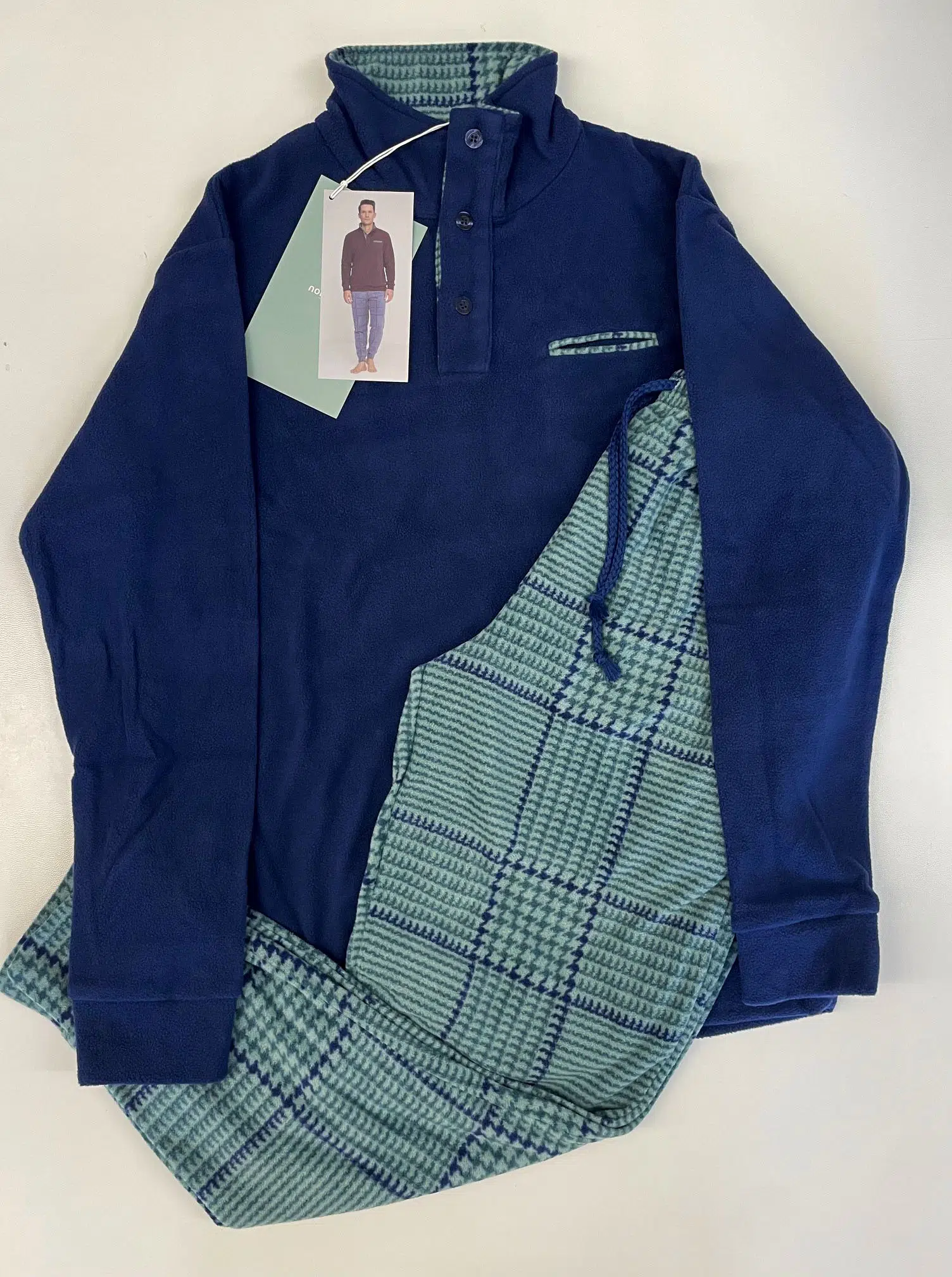 Rif.2949 Pigiama uomo prince in pile con collo tre bottoni