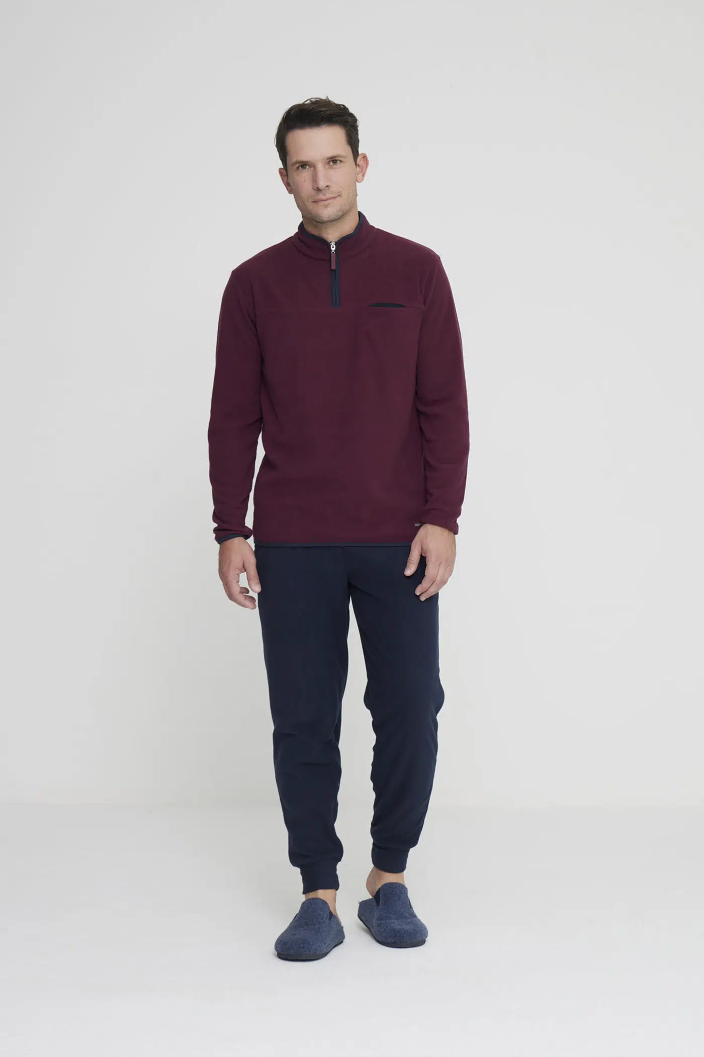 Completo uomo unity in caldo pile con collo con zip e taschino, pantalone tinta unita con comodi polsini