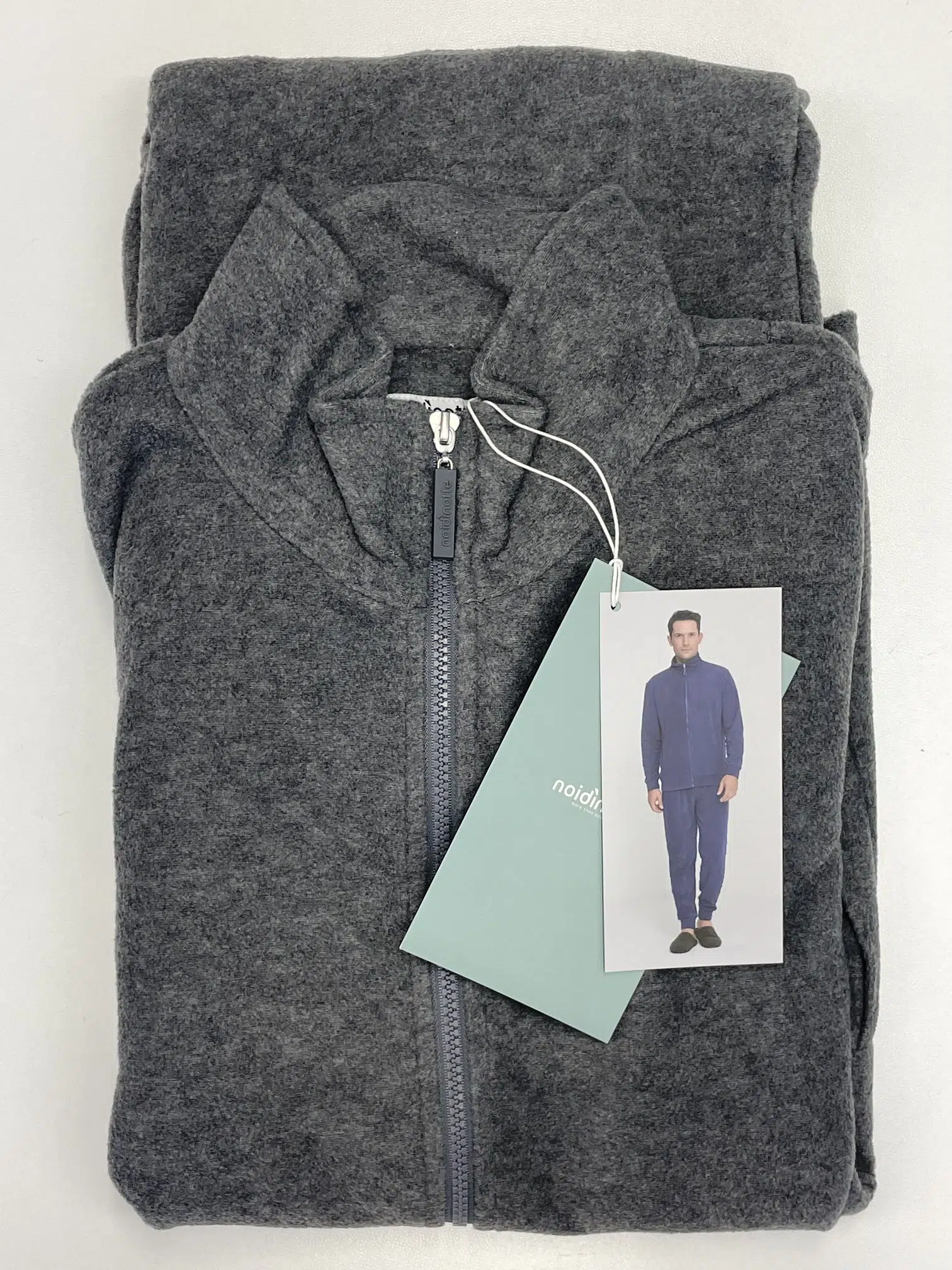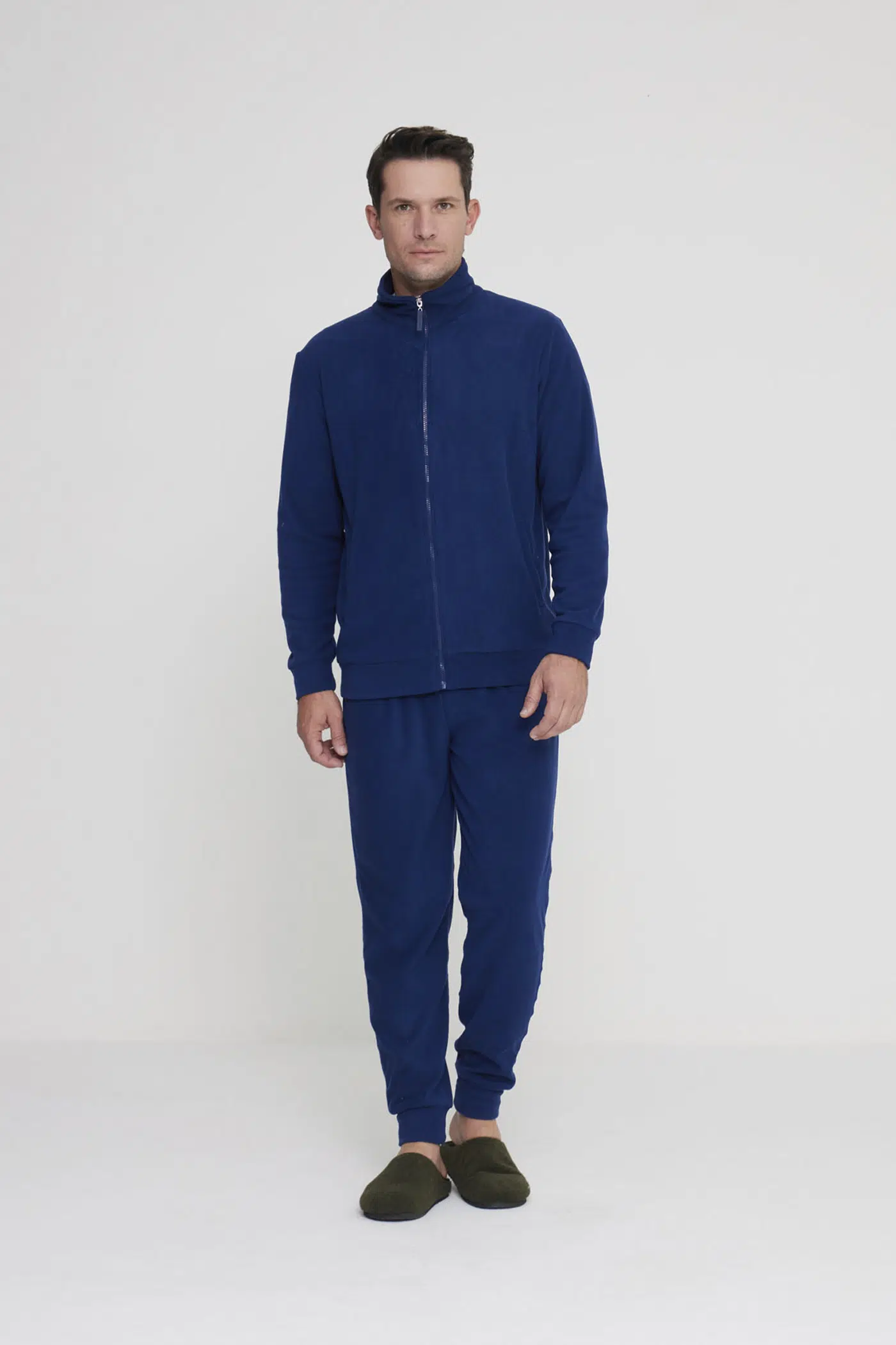 Completo loungewear uomo almy in caldo pile con pratica zip, pantalone tinta unita con comodi polsini
