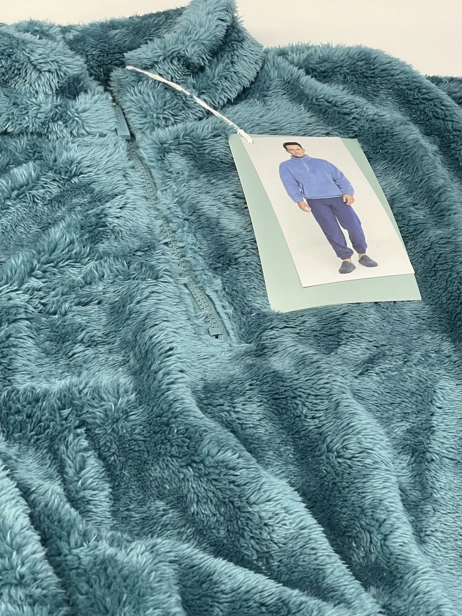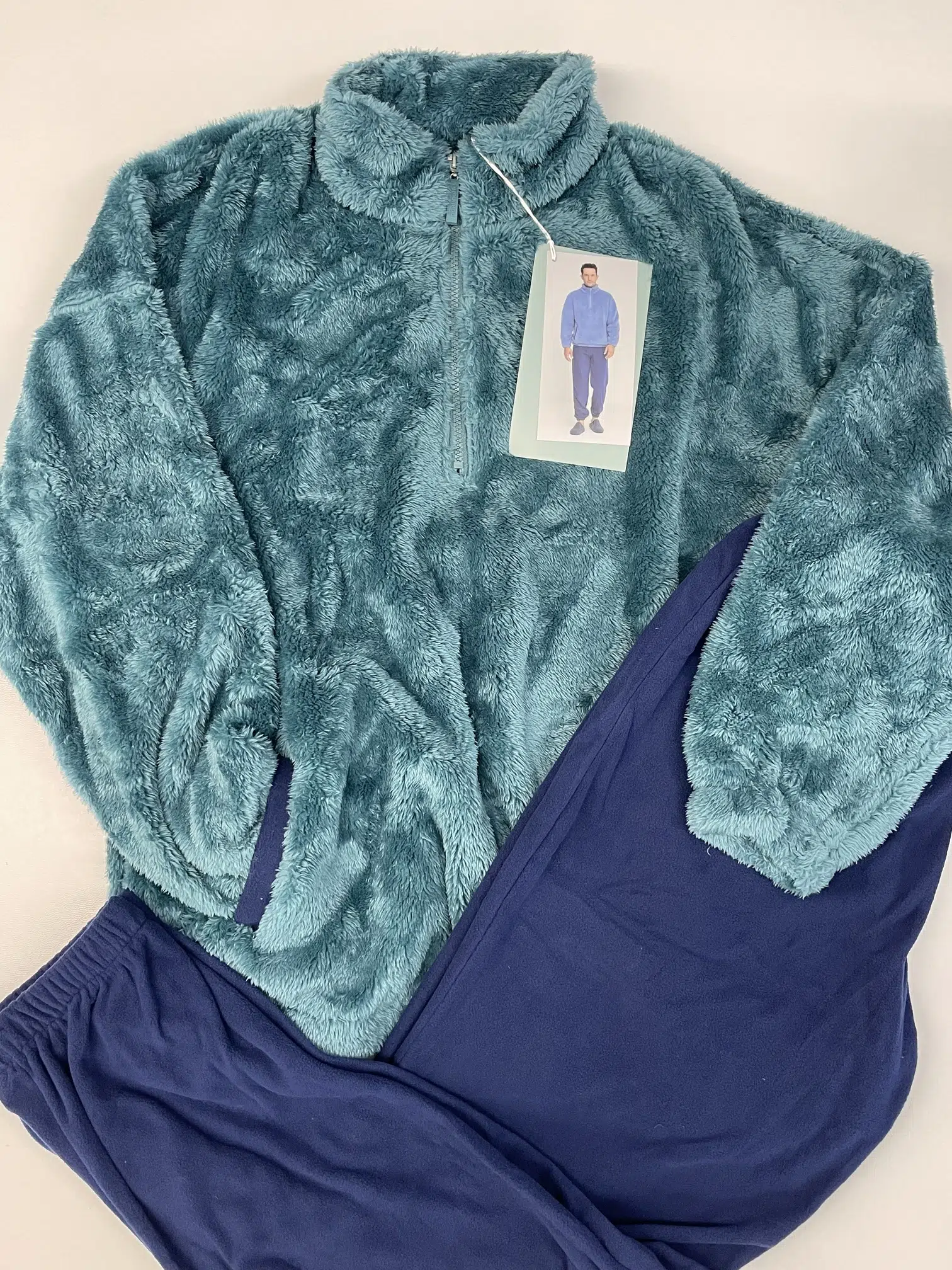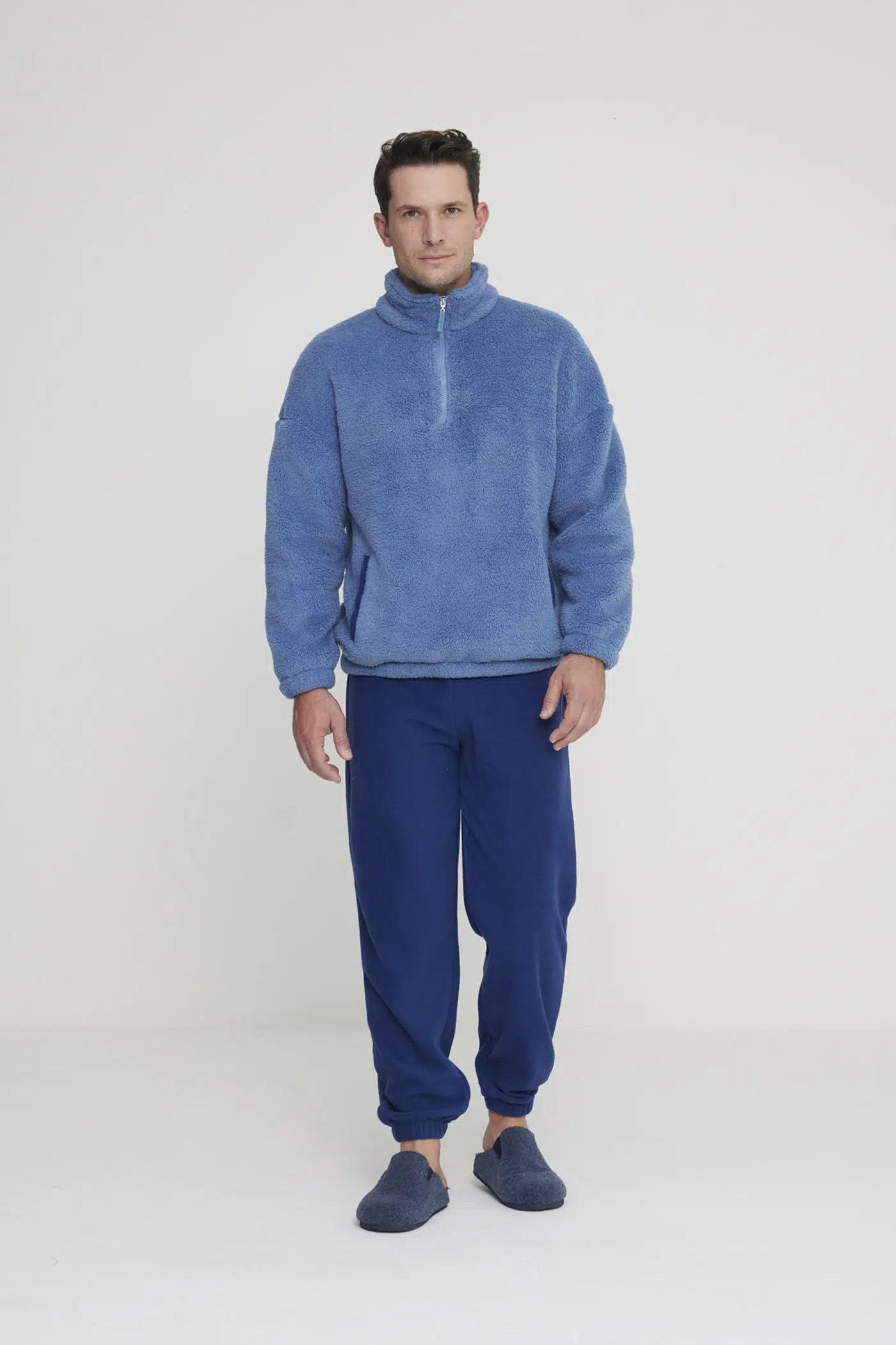 Pigiama uomo maglia eco pelliccia collo alto con zip e comode tasche, pantalone in micropile