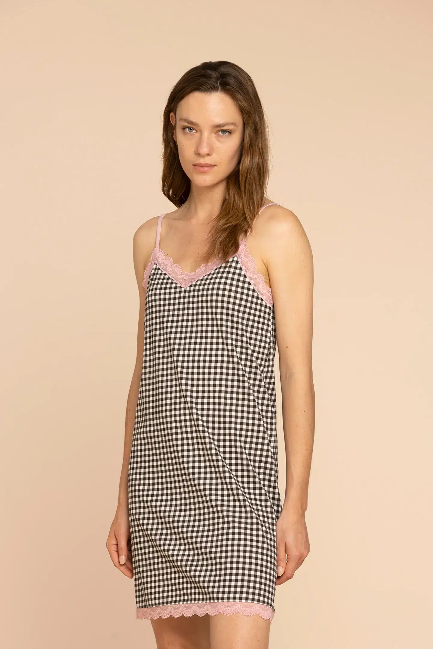 Camicia da notte donna bretellina cotone paris con dettagli in pizzo e stampa pois