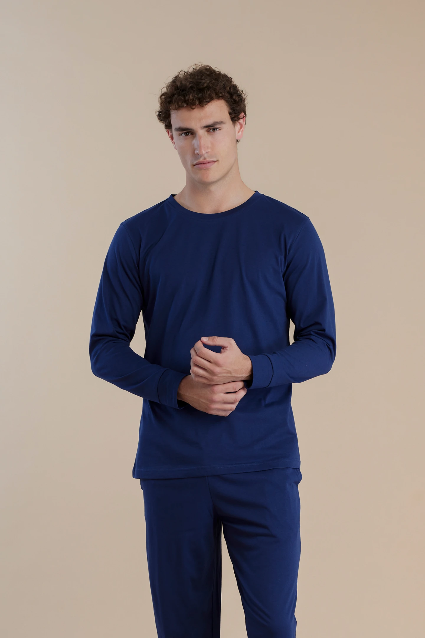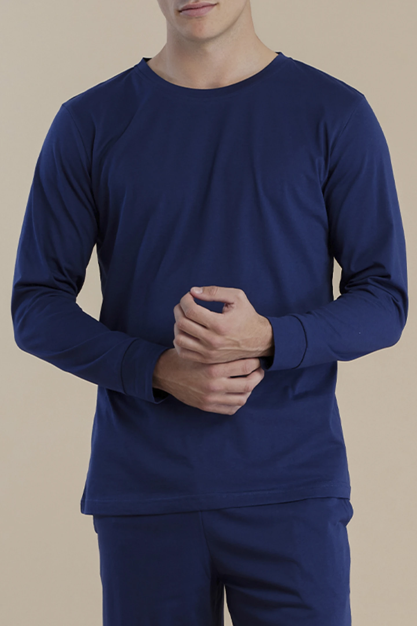Rif.3036 Pigiama uomo in cotone manica lunga con girocollo easy