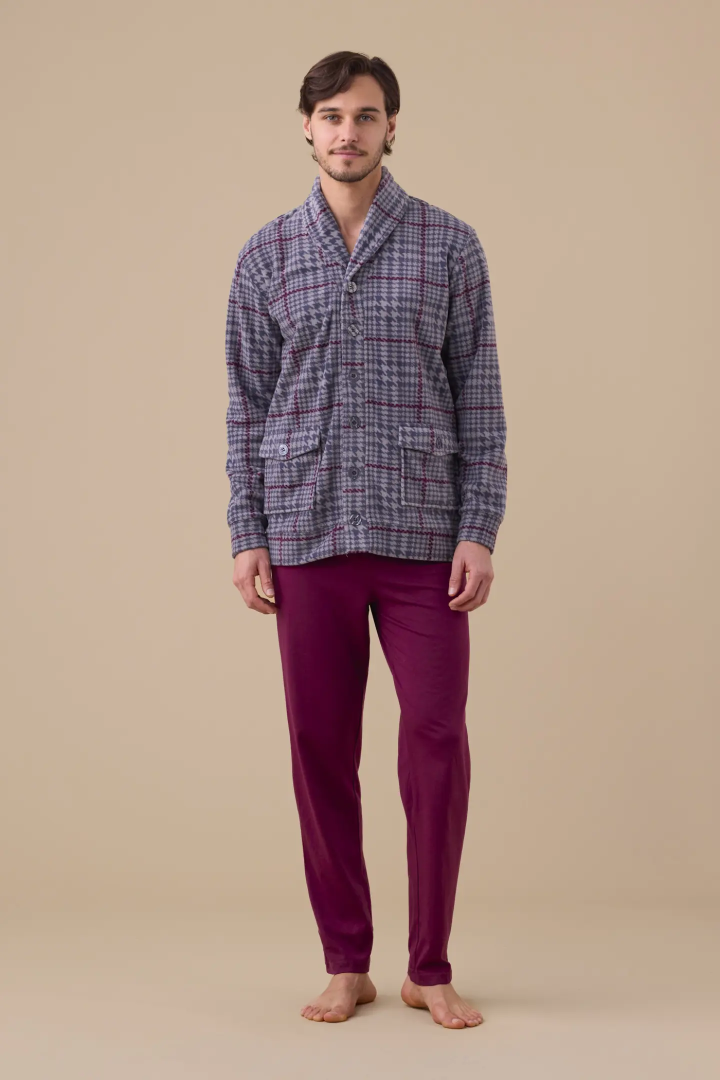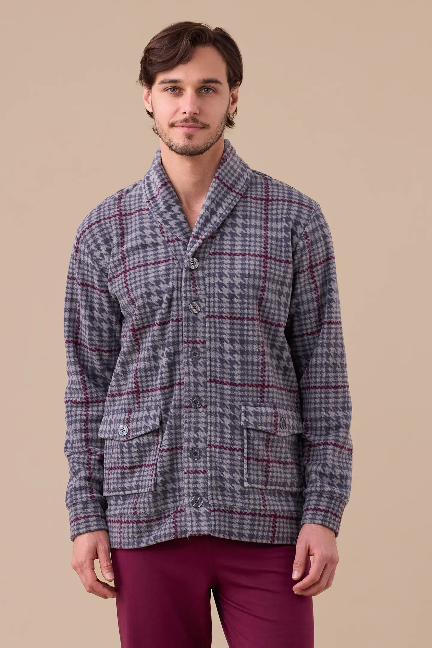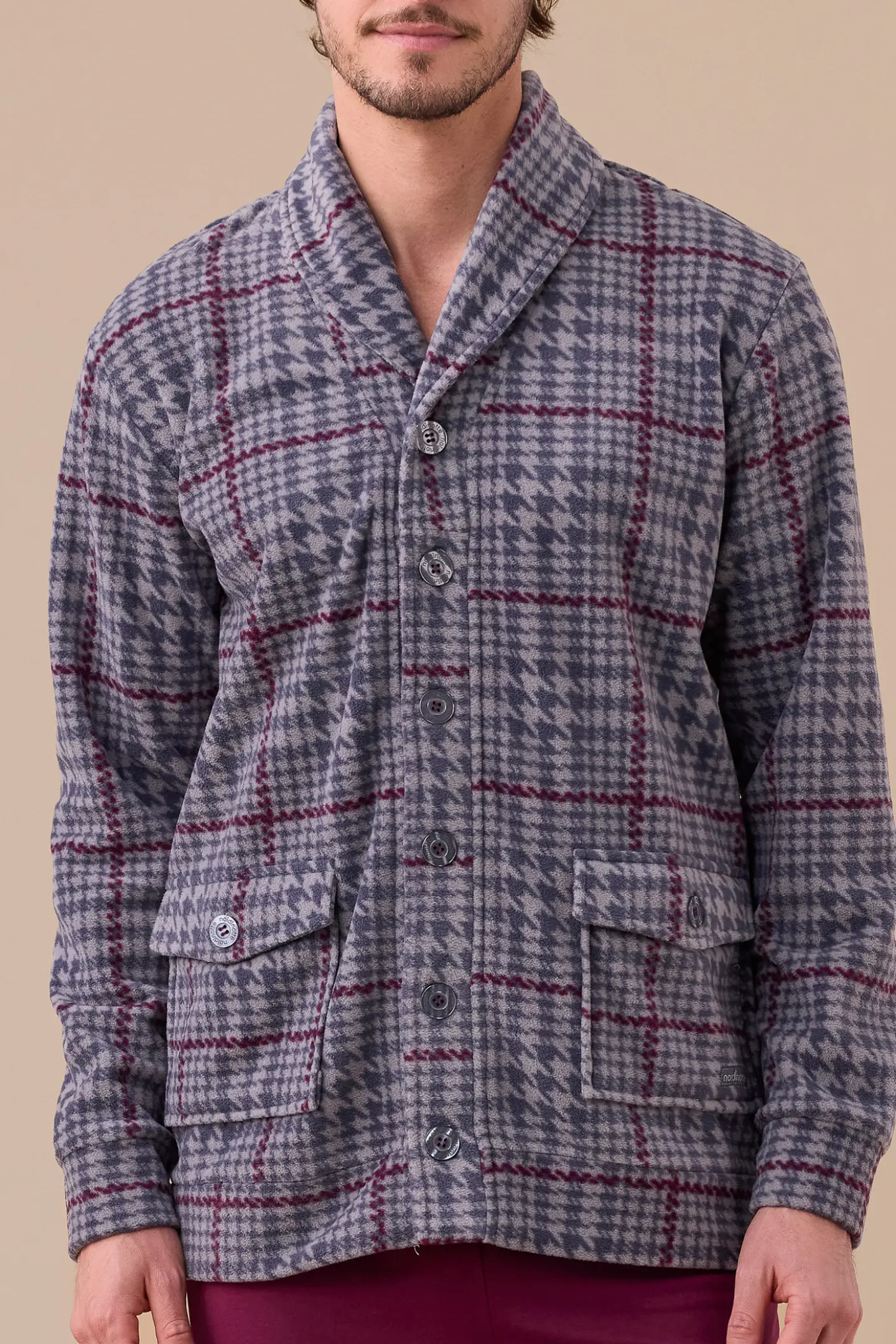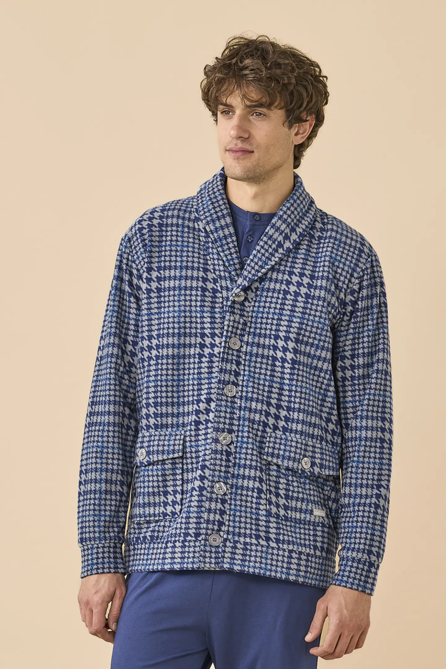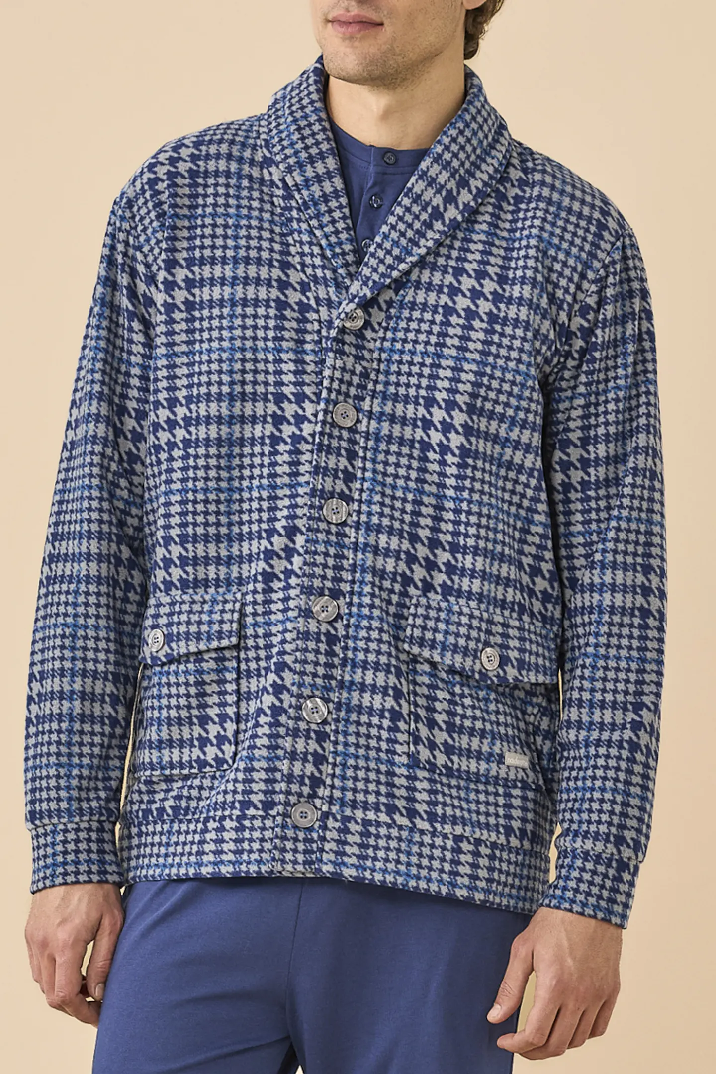 Giacca uomo in micropile stampa principe di galles con bottoni e tasche.