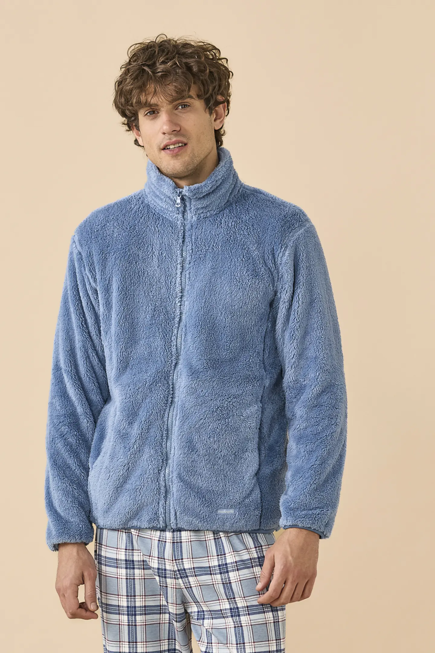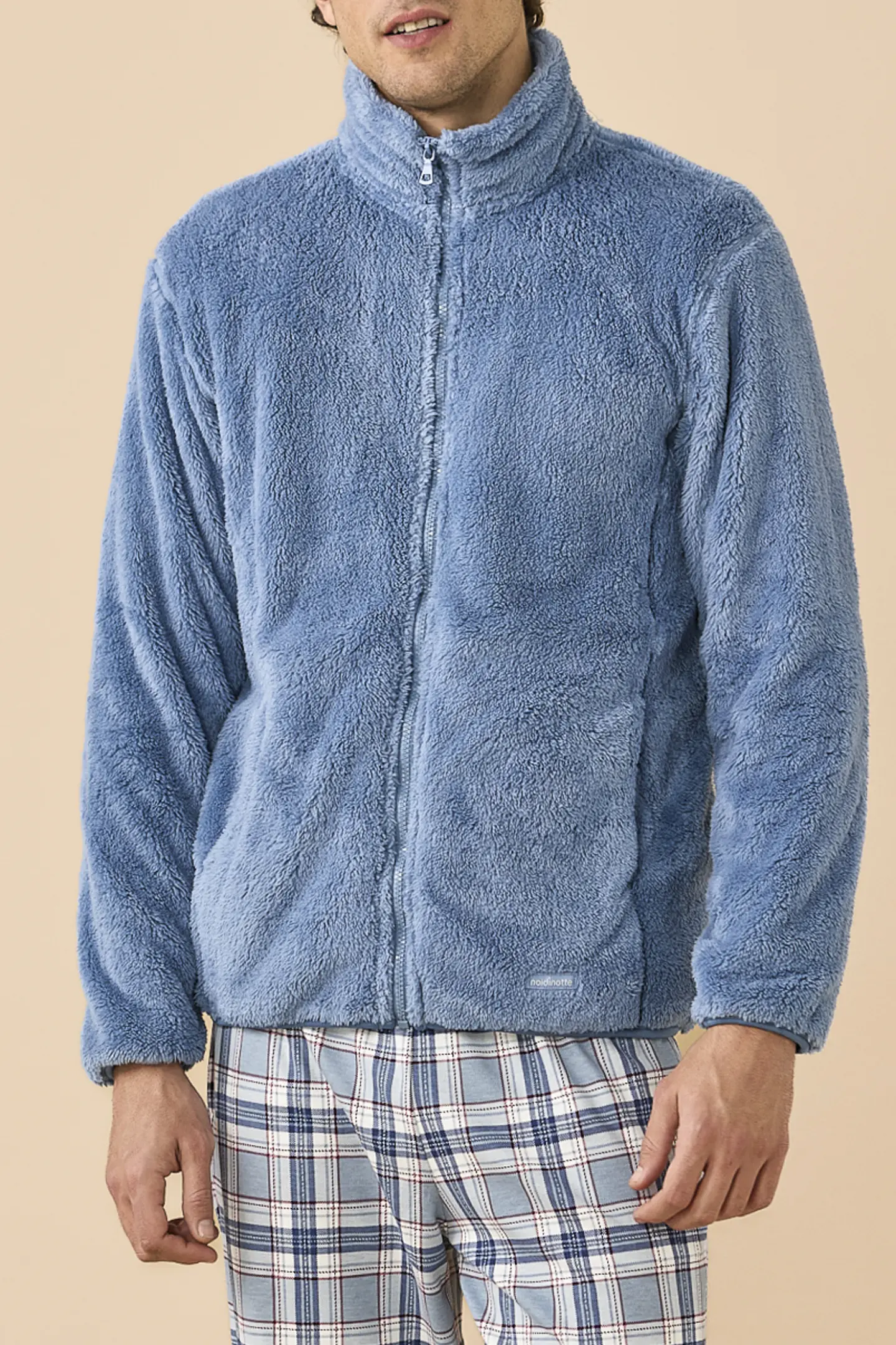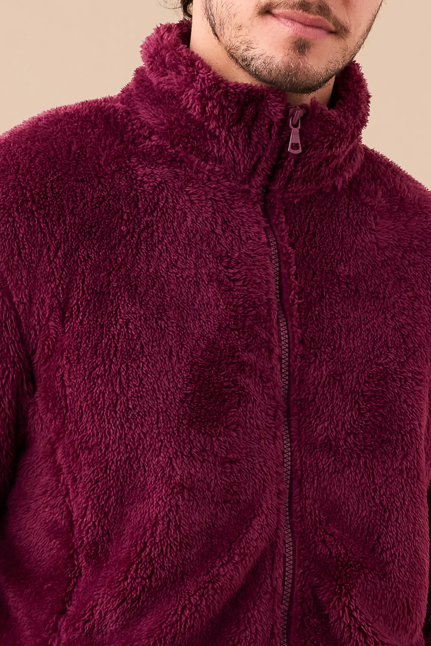 Giacca in eco-pelliccia tinta unita con zip e tasche.
