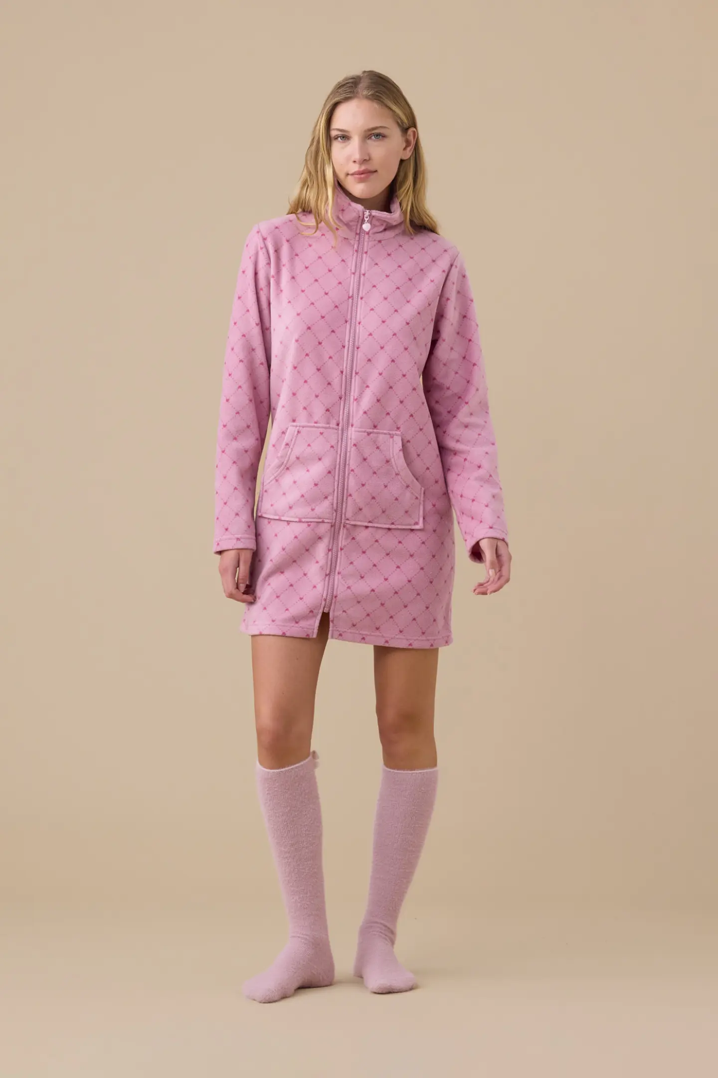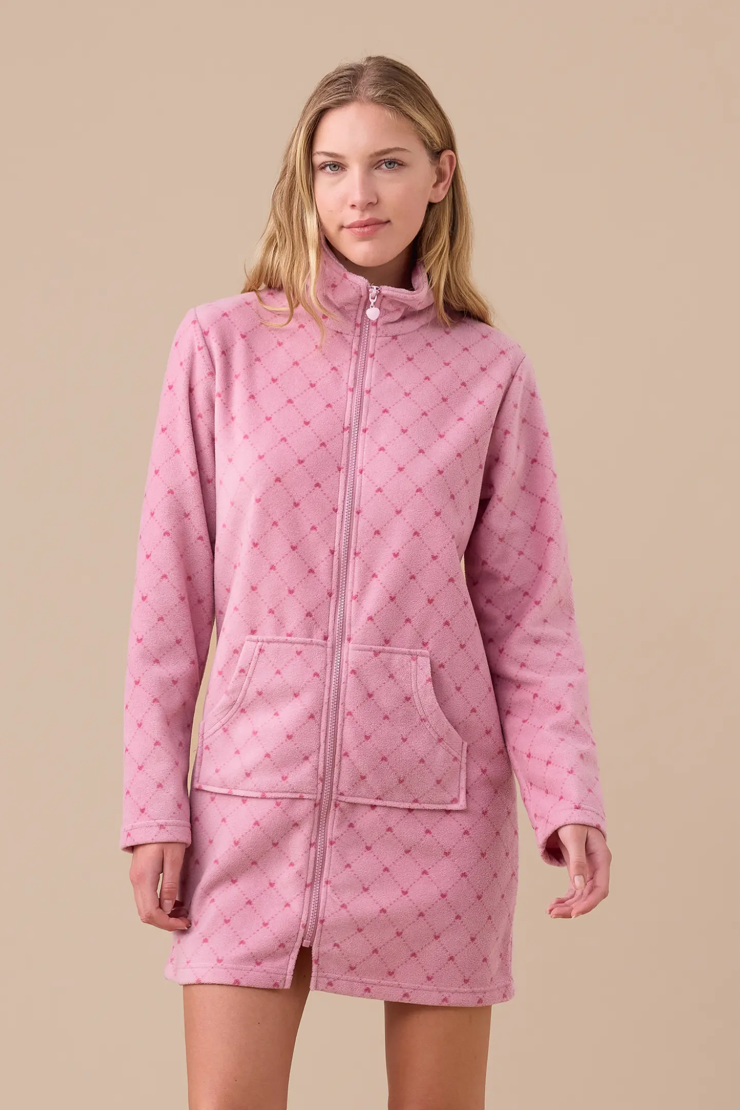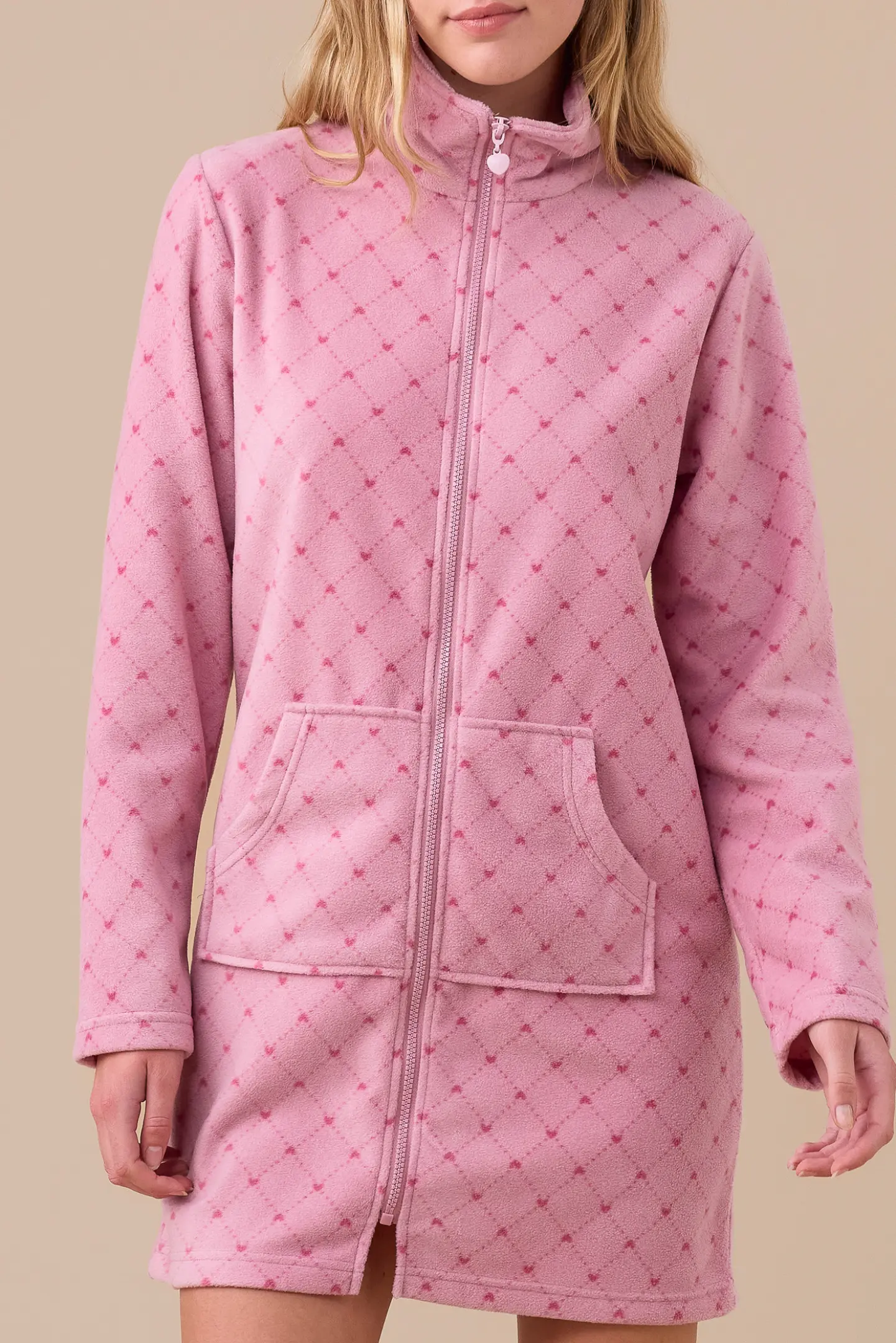 Vestaglia donna plus in micropile con apertura zip sul davanti e tasche