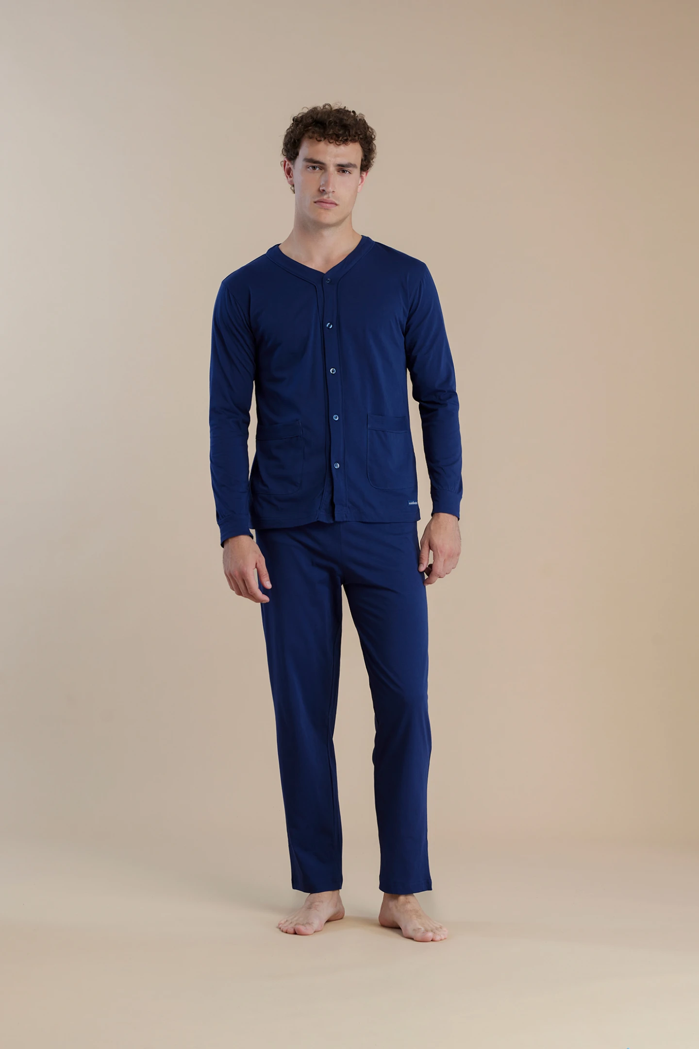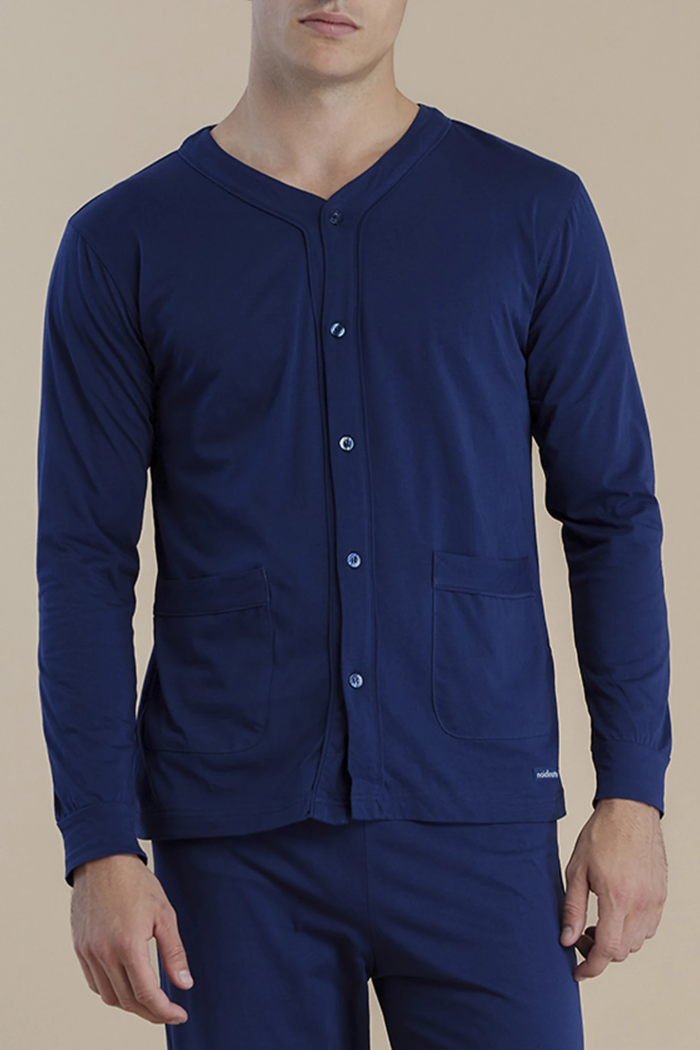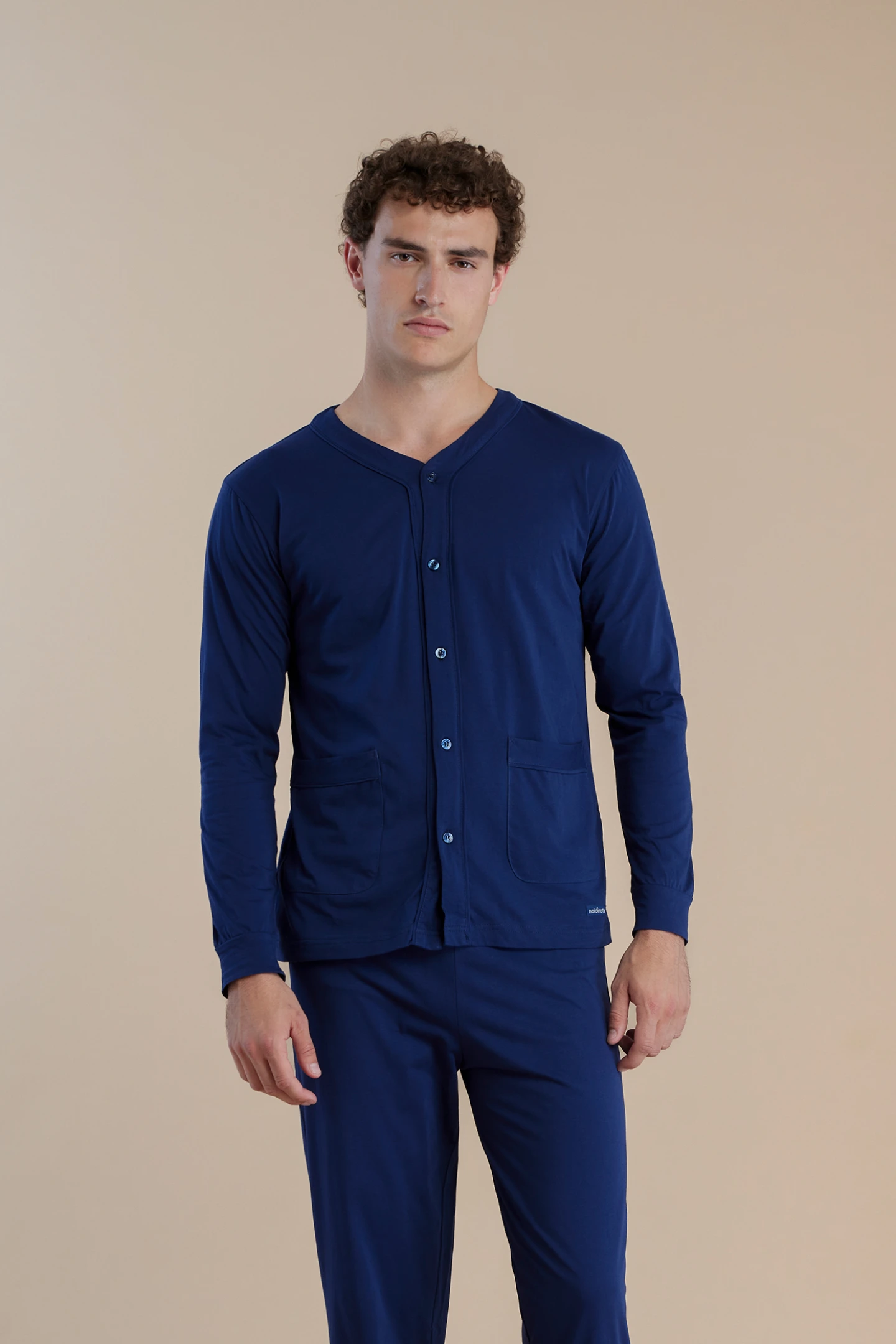 Pigiama uomo in 100% cotone top aperto davanti manica lunga in tinta unita e pantalone lungo coordinato per garantire comfort e stile in ogni notte