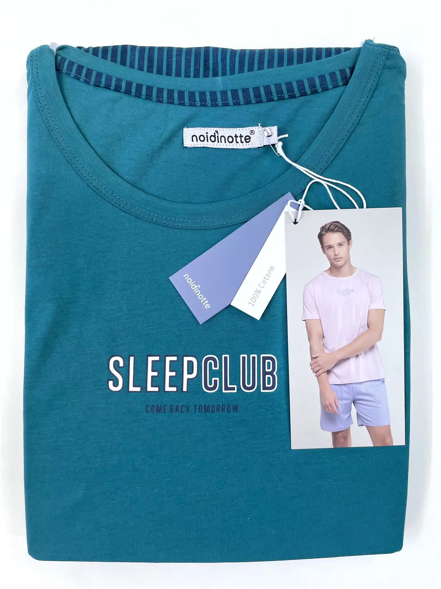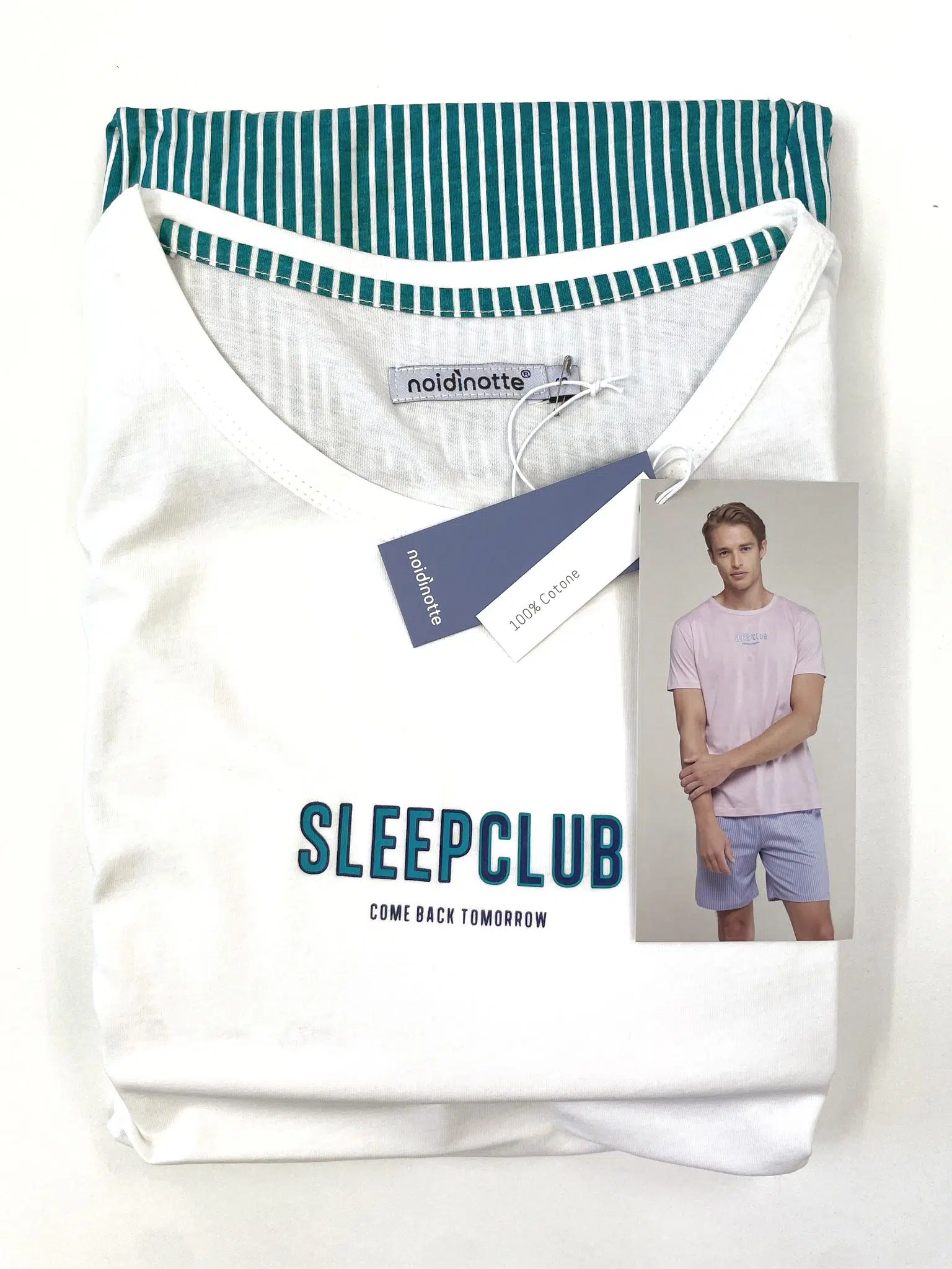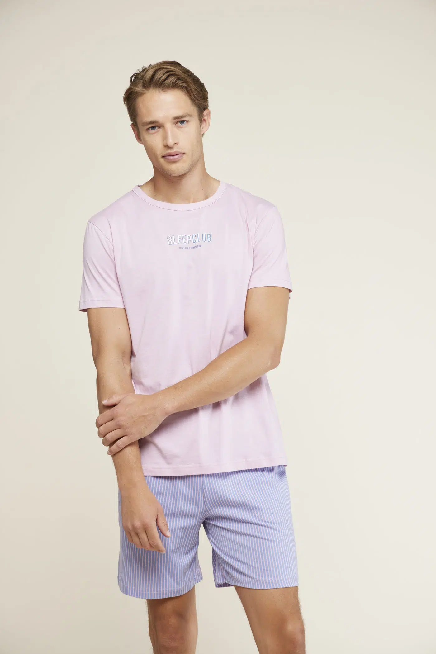 Pigiama ragazzo top manica corta in tinta con stampa e pantalone corto con righe e tasche laterali