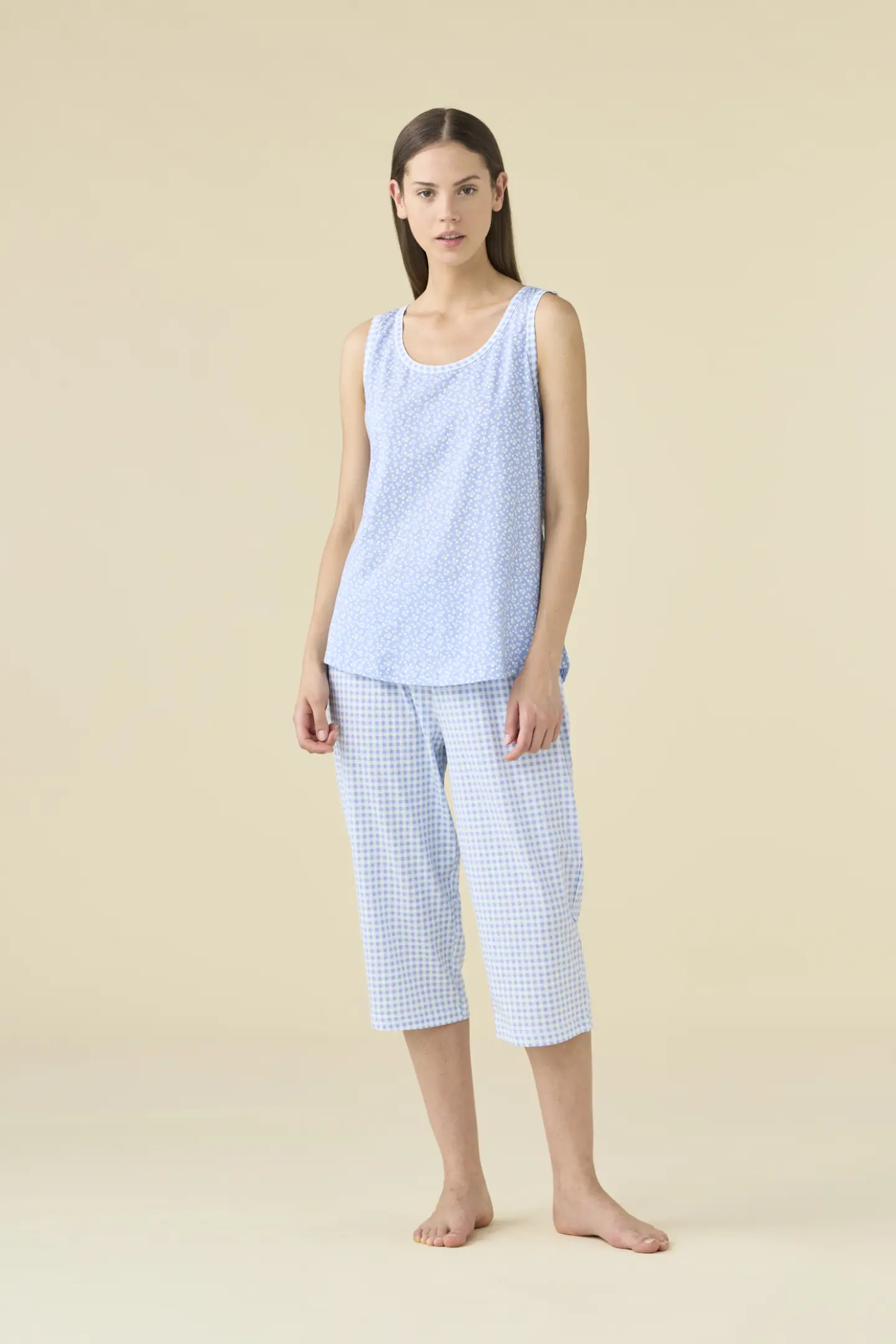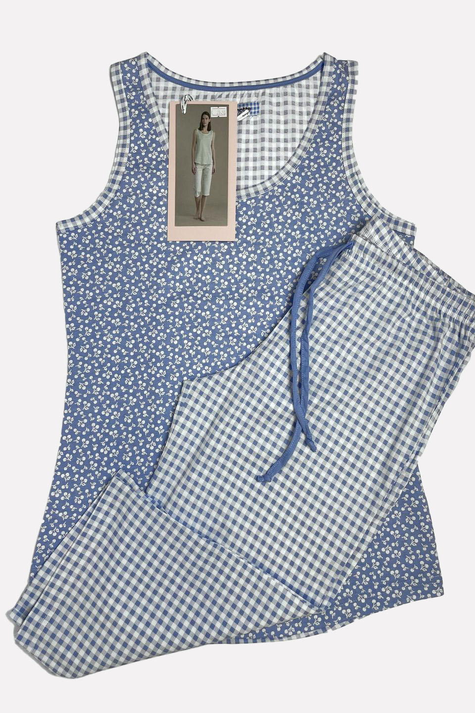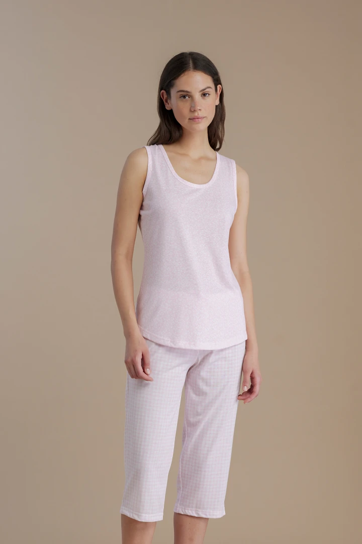 Rif.9210 Pigiama donna in cotone con top spalla larga vichy conformato