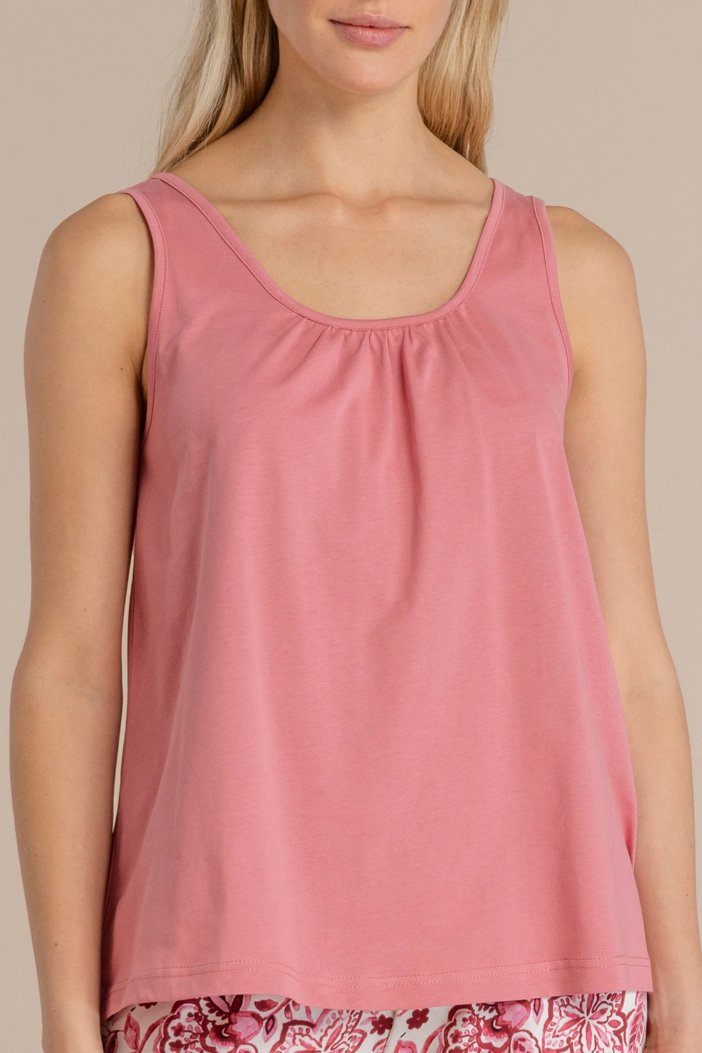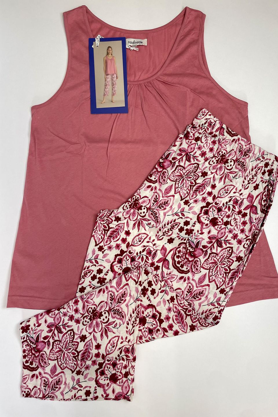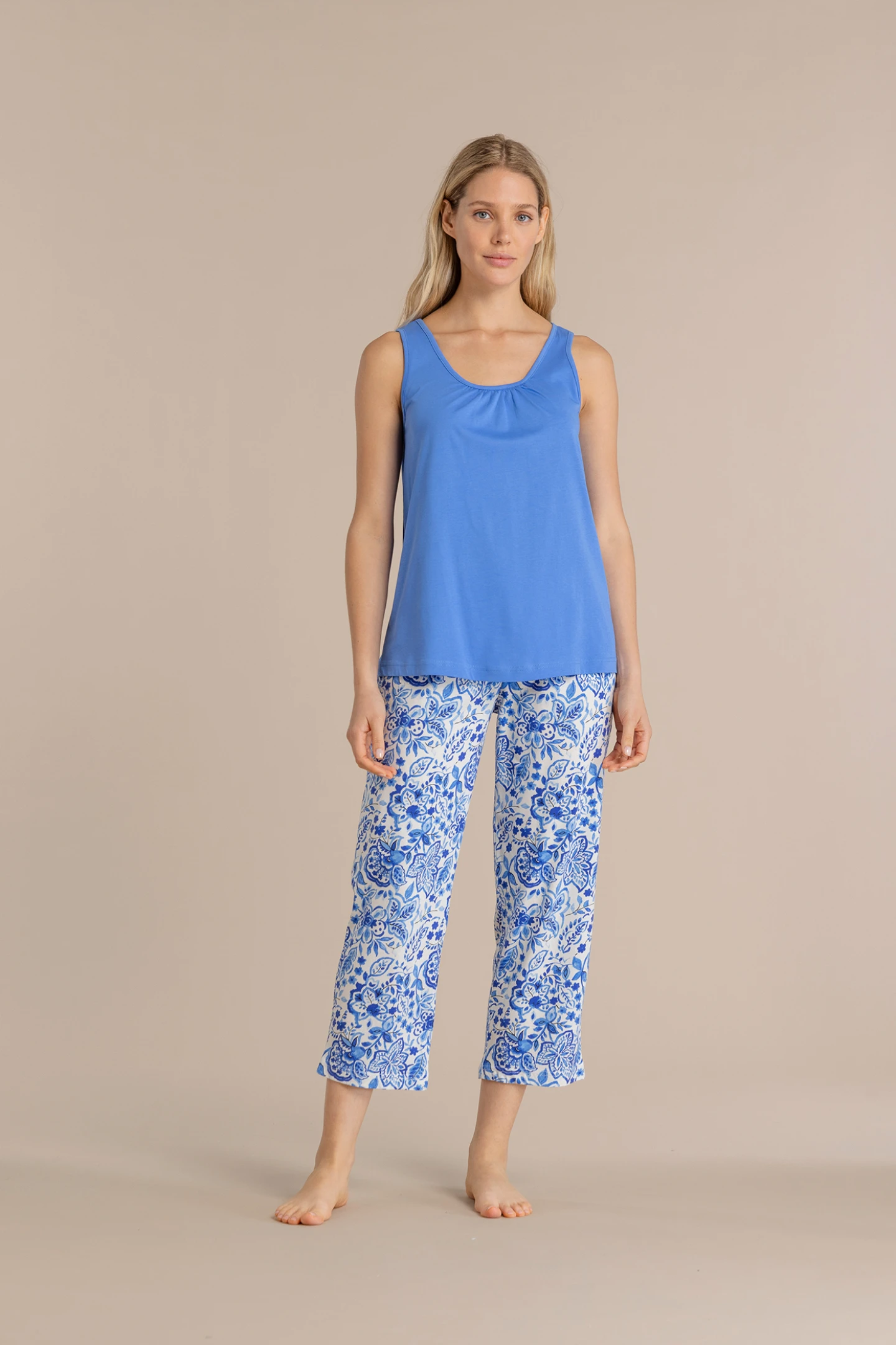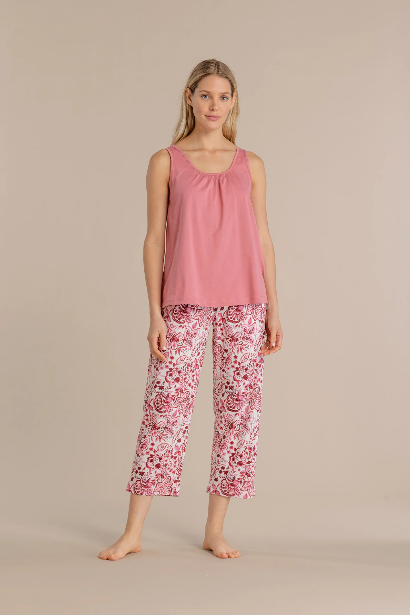 Rif.9212 Pigiama donna in cotone con top spalla larga e pantalone pescatore 3/4 articolo acquerello calibrato