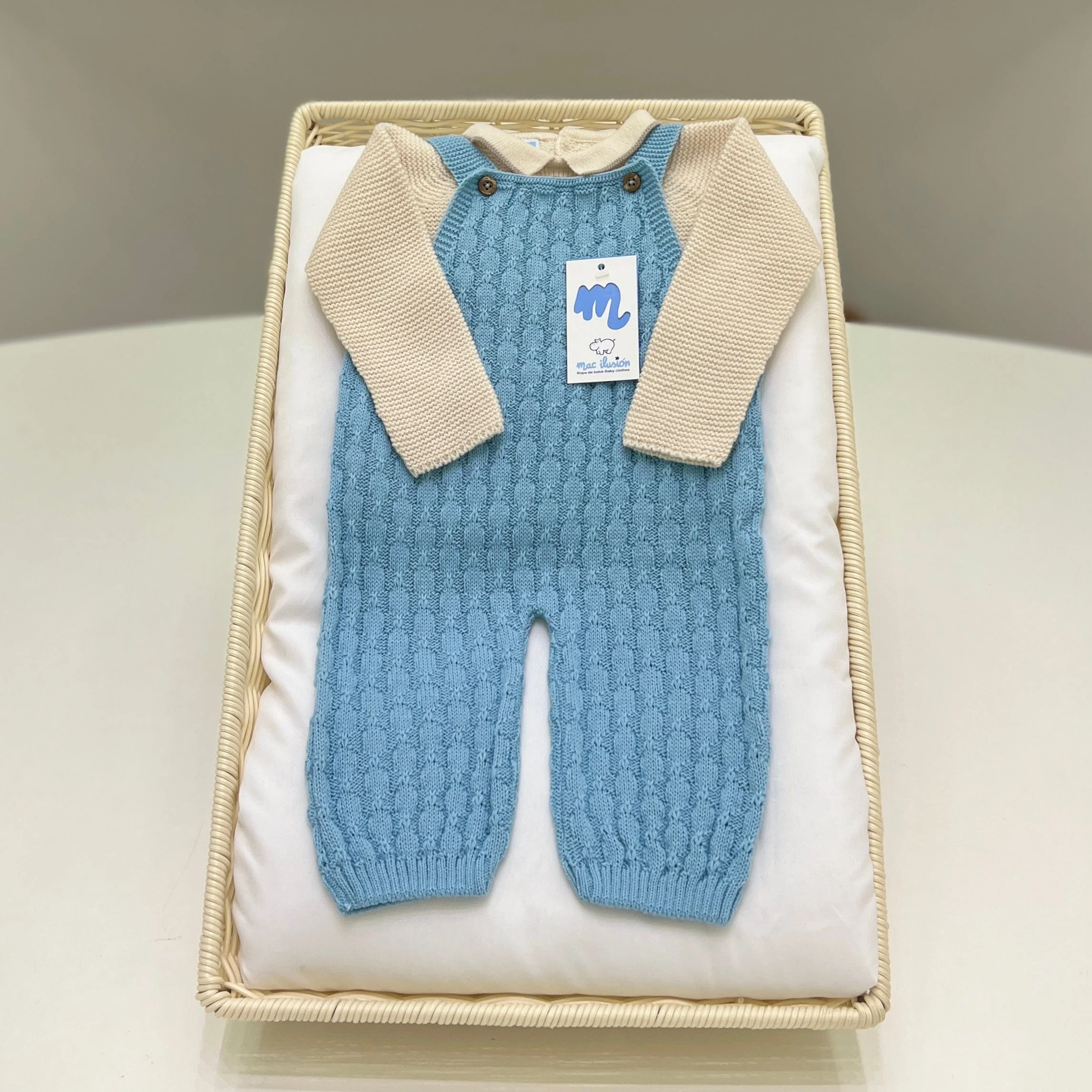 Completo due pezzi salopette in misto lana con maglia coordinata con colletto e bottoncini. Comp: 60% lana 40% acrilicoSKU: 9452