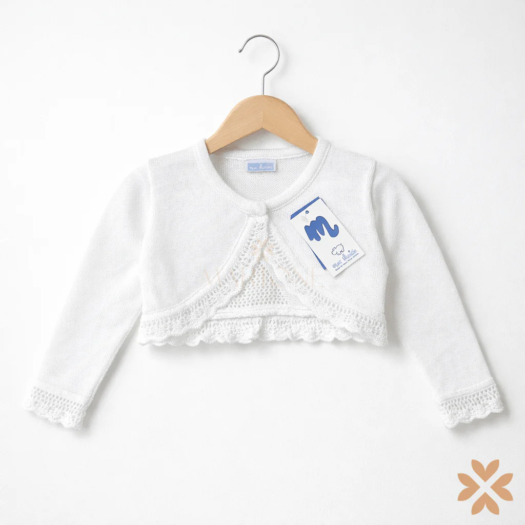 Scaldacuore bimba in filo di cotone con bordo smerlato.