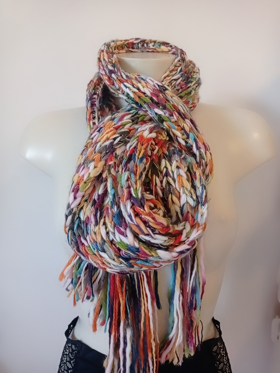 Sciarpa Multicolore con Frange – L’accessorio Boho Chic che aggiunge colore e calore ai tuoi look