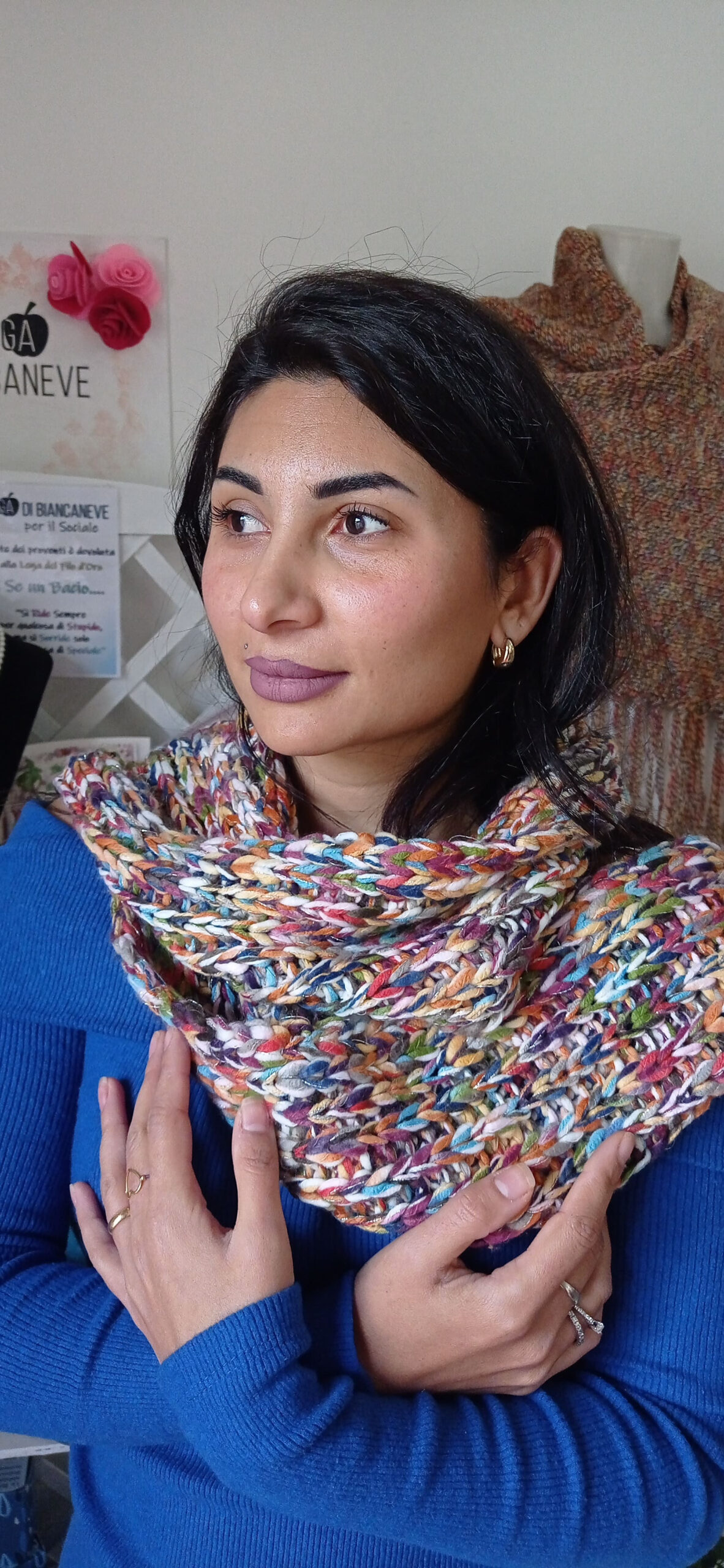 Scegli di essere unica con la Sciarpa Multicolore con Frange, scegli il calore e la vivacità della nostra sciarpa boho chic!