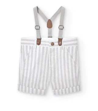 Queste bermudas in lino per bambini sono l’ideale per l’estate, sono caratterizzate da un design a righe e un tessuto piatto. Il colore è un elegante Pietra Listato. La chiusura è a bottone, facile da usare per i piccoli. I tiranti aggiungono un tocco di stile e rendono queste bermudas adatte per ogni occasione. Sono […]