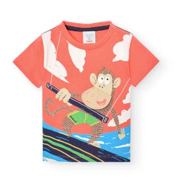 Questa è una camiseta per bambini in punto, ideale per i mesi estivi. Perfetta per i bambini in crescita. Il colore arancione vivace la rende attraente e divertente. Il tessuto in punto la rende comoda e traspirante, mentre il collo rotondo e le maniche corte offrono un’ottima vestibilità. La decorazione è un simpatico stampato, che aggiunge un tocco di personalità. Questa camiseta è un’aggiunta versatile e pratica al guardaroba di ogni bambino.