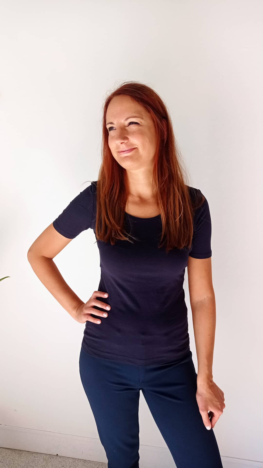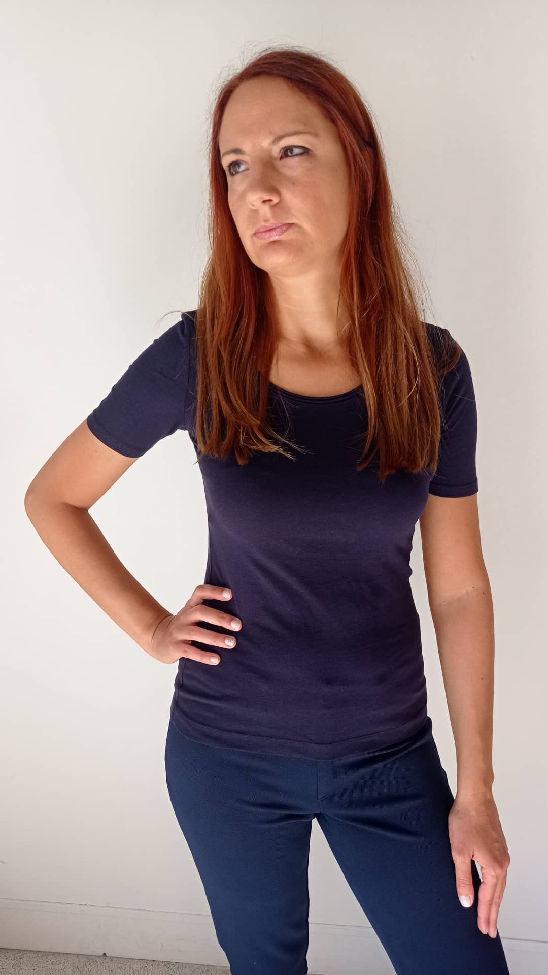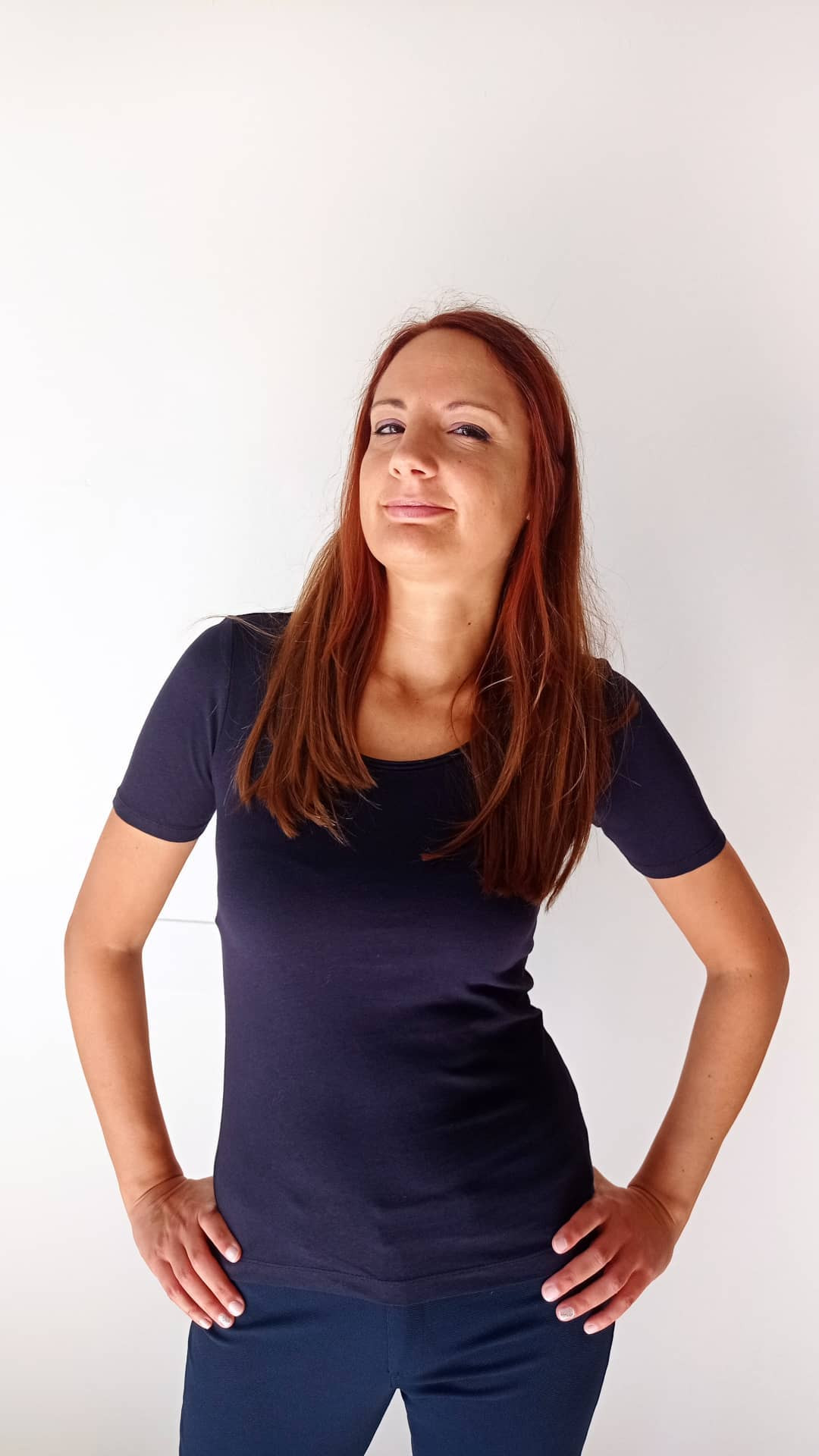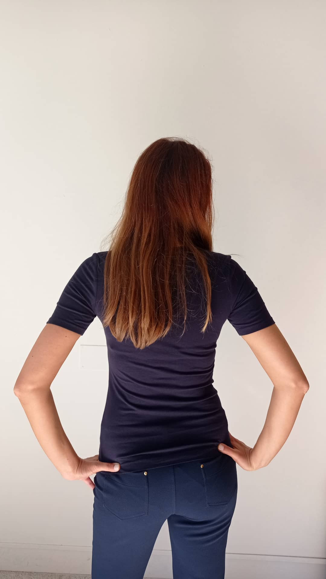 Modello basi in blu mezza manica in cotone.
