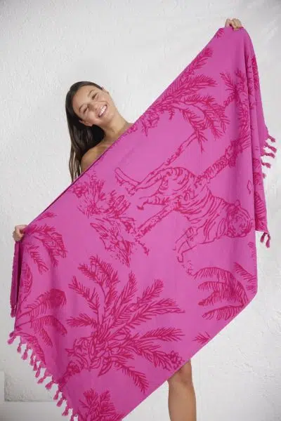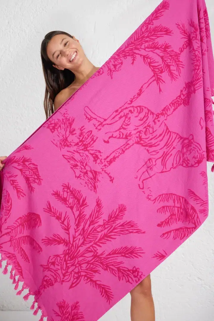 Telo mare spugna palma 90×170 cm con stampa jungle e nappine
