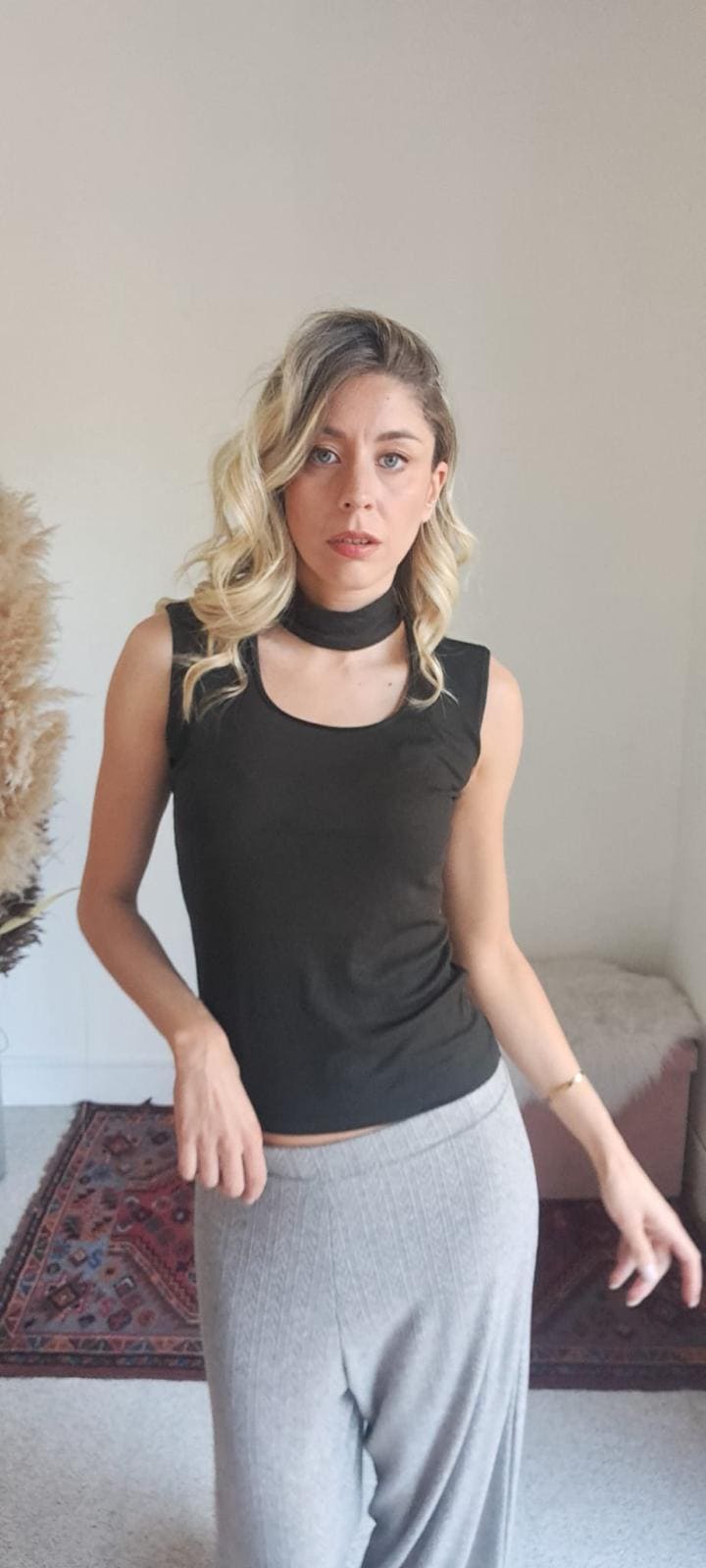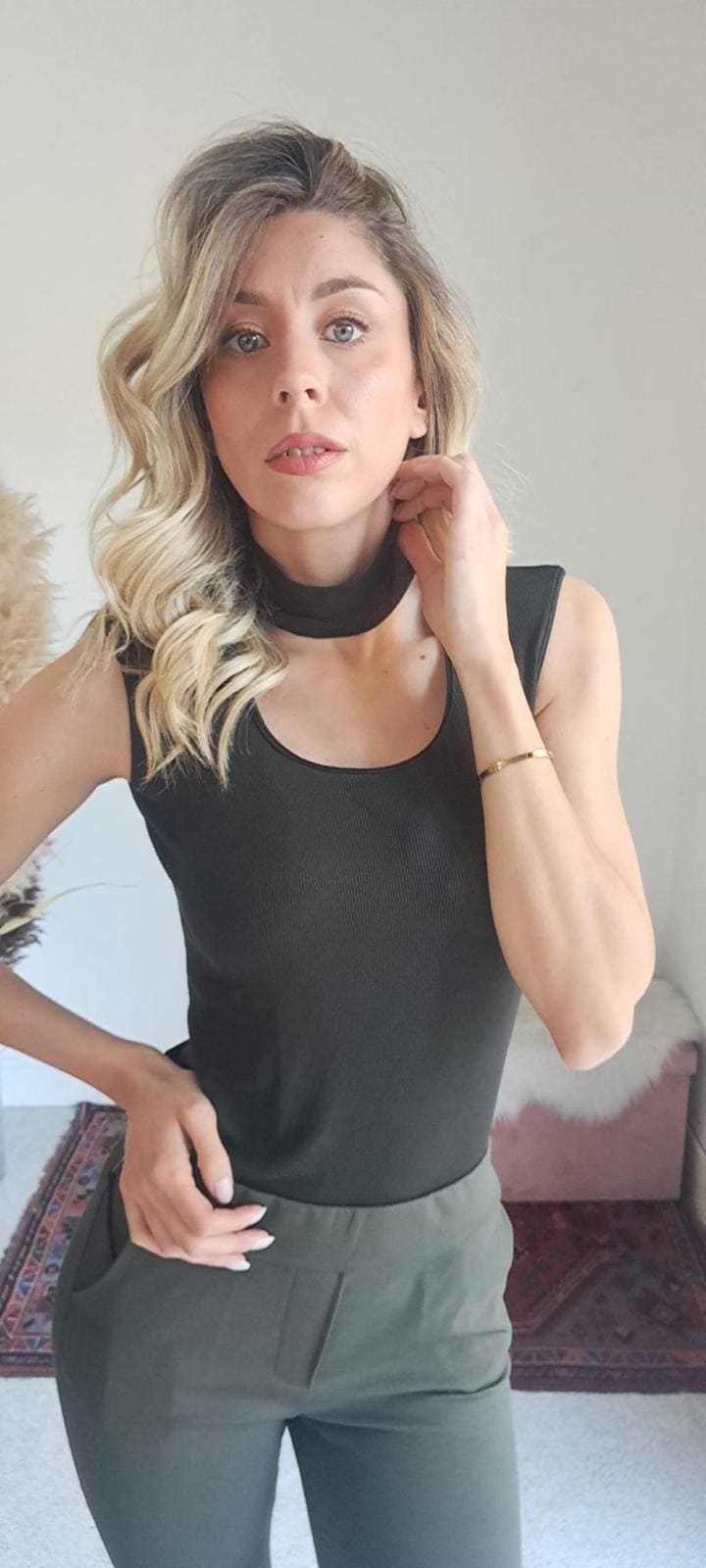 Il Top Verde Scuro con Collo ad Anello è uno di quei capi che non restano mai nel cassetto. Lo indossi una volta… e diventa subito il tuo preferito.
