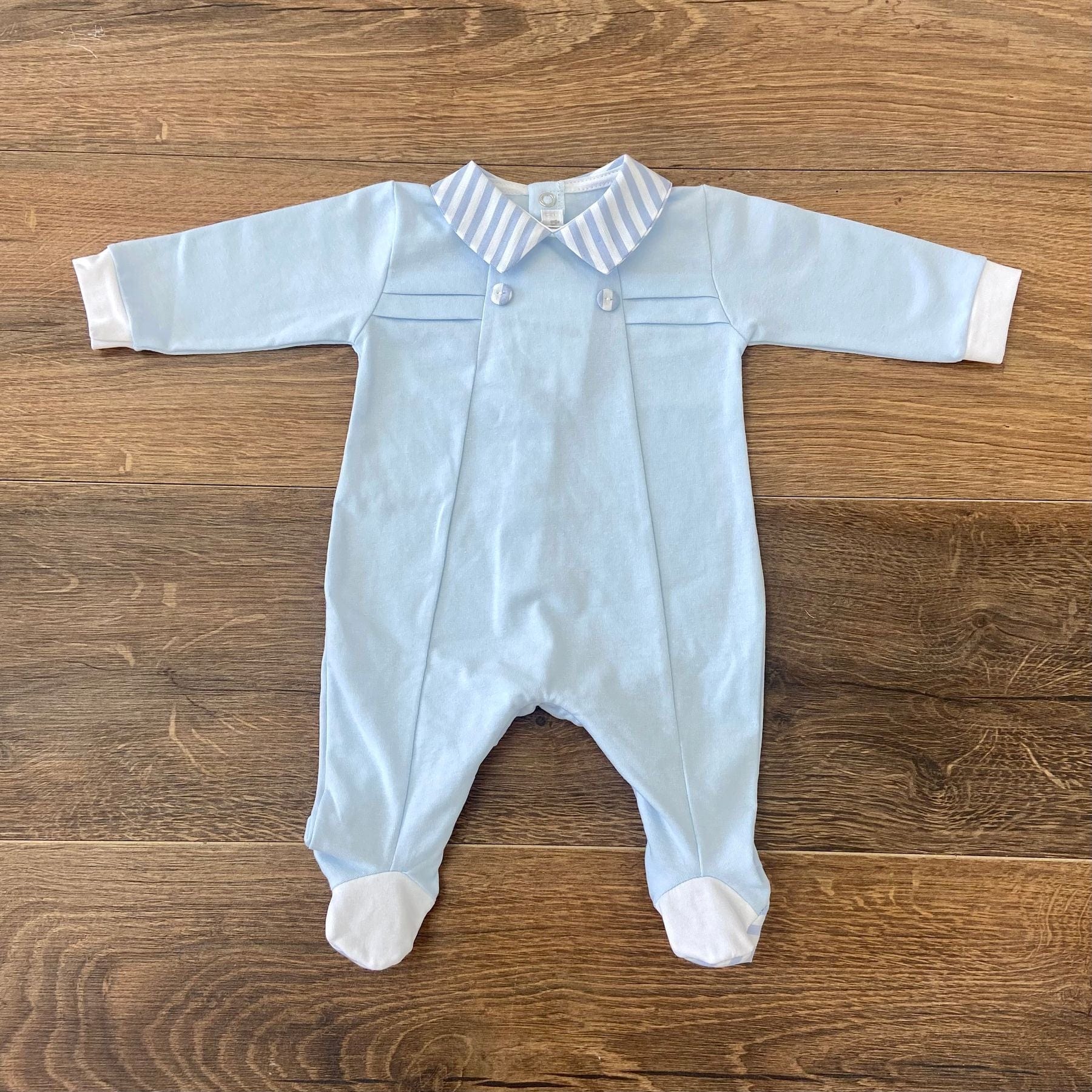 Tutina intera in cotone con colletto a righe.
