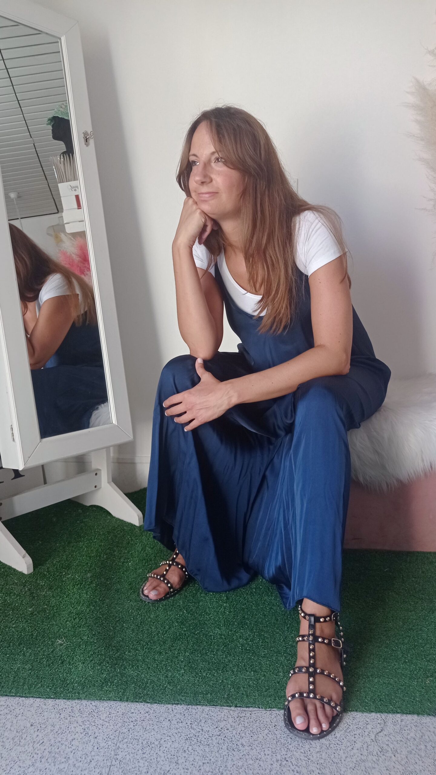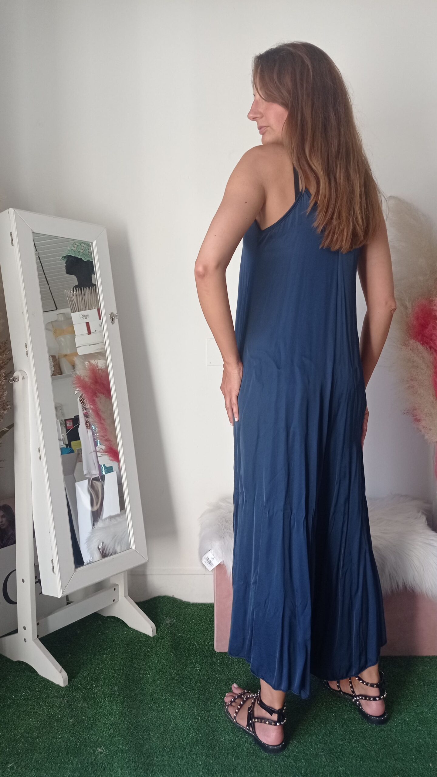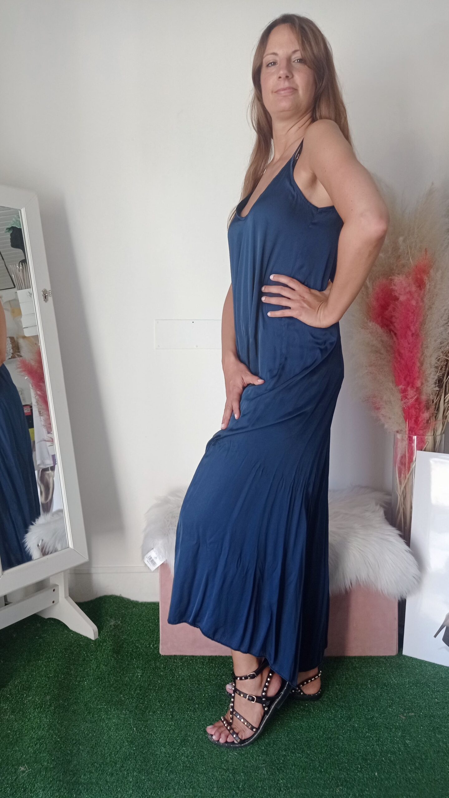 Eleva il tuo stile con la nostra maxi tuta realizzata in morbida viscosa. Questa tuta fluida e leggera è perfetta per ogni occasione, combinando comfort e raffinatezza. Disponibile nei colori blu intenso e oro luminoso, si adatta perfettamente alle taglie S, M e L. Il design ampio e il tessuto traspirante offrono una vestibilità confortevole, mantenendo una silhouette elegante e sofisticata. Ideale per essere abbinata sia a sandali bassi per un look casual che a tacchi alti per un’occasione speciale.