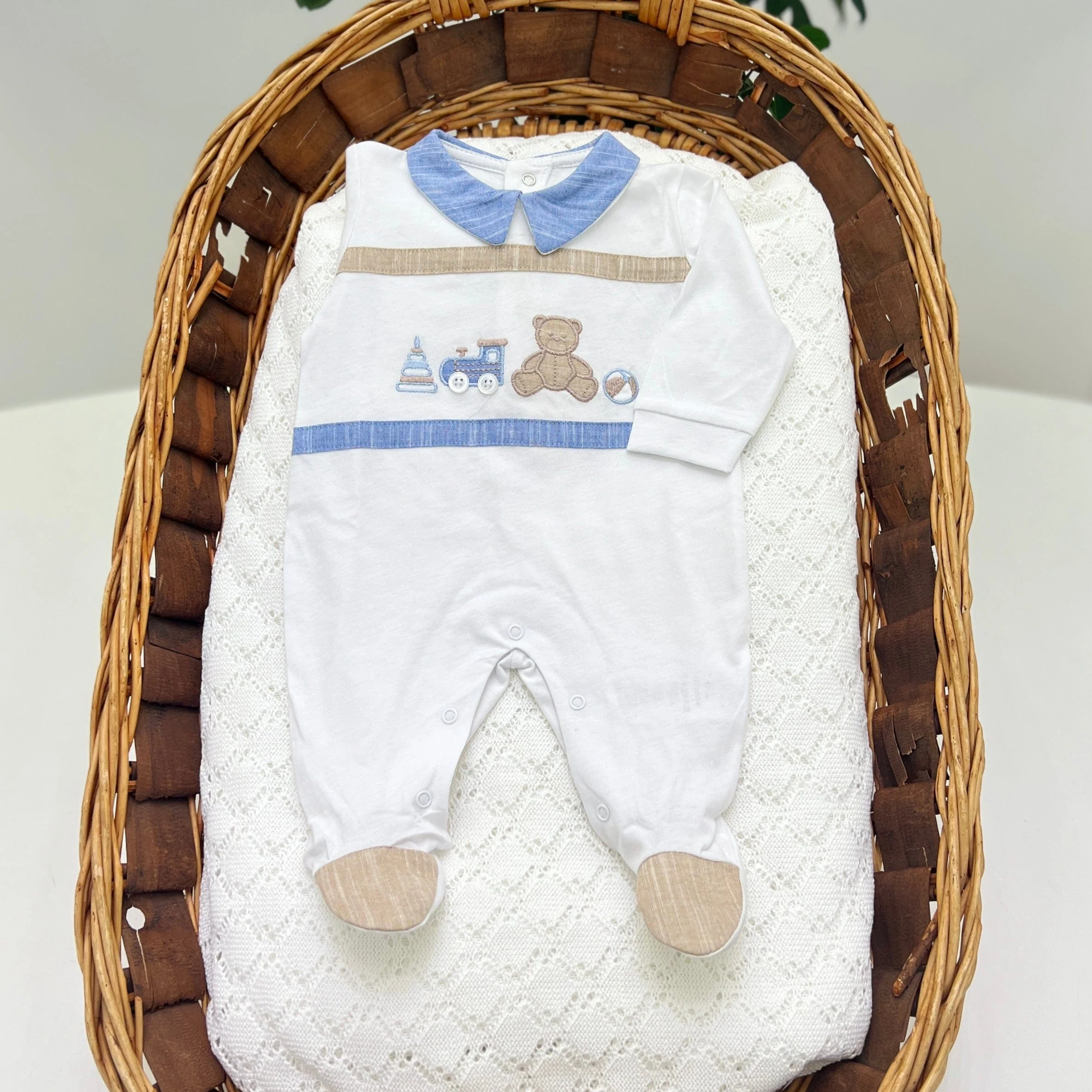 Tutina intera in morbido cotone, pratica e confortevole, perfetta per avvolgere il neonato in ogni momento della giornata. 100% cotonecod art: 25N457