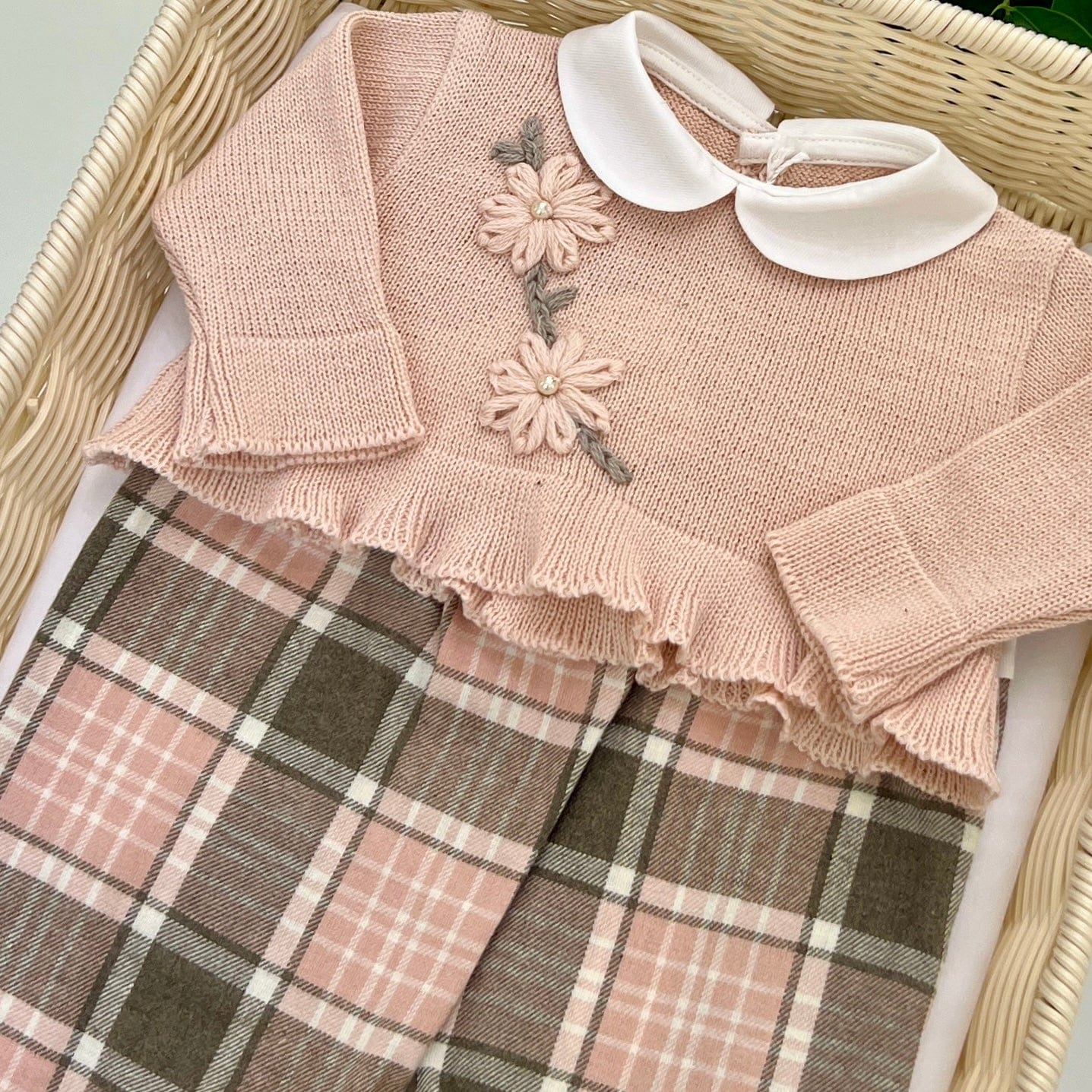 Tutina intera per neonata con maglia in misto lana sovrapposta.